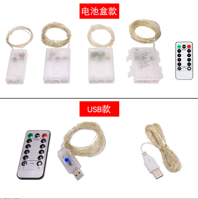 공장에서 공급하는 도매 구리선 LED 조명 스트링, 휴일 장식 조명, 크리스마스 장식 별 조명 스트링, USB 리모컨 야간 조명, 장식 조명