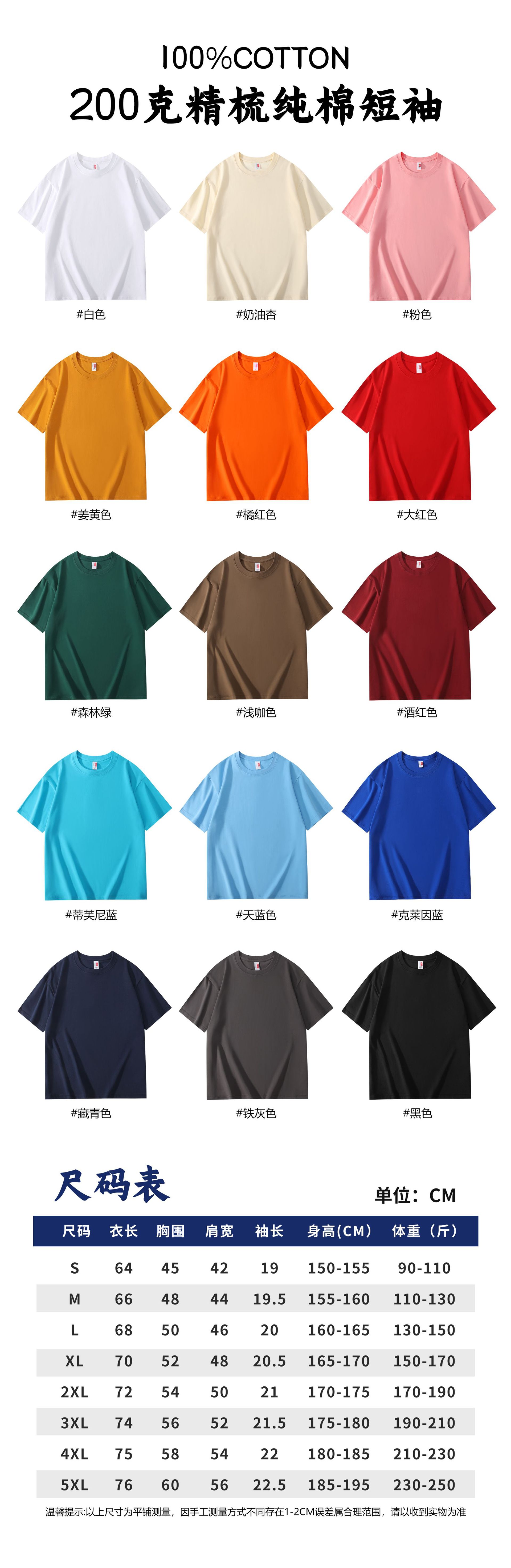 새로운 라이브 폭발 200g Combed Cotton Blank 티셔츠 크루 넥 짧은 소매 남성과 여성의 동일한 광고 셔츠