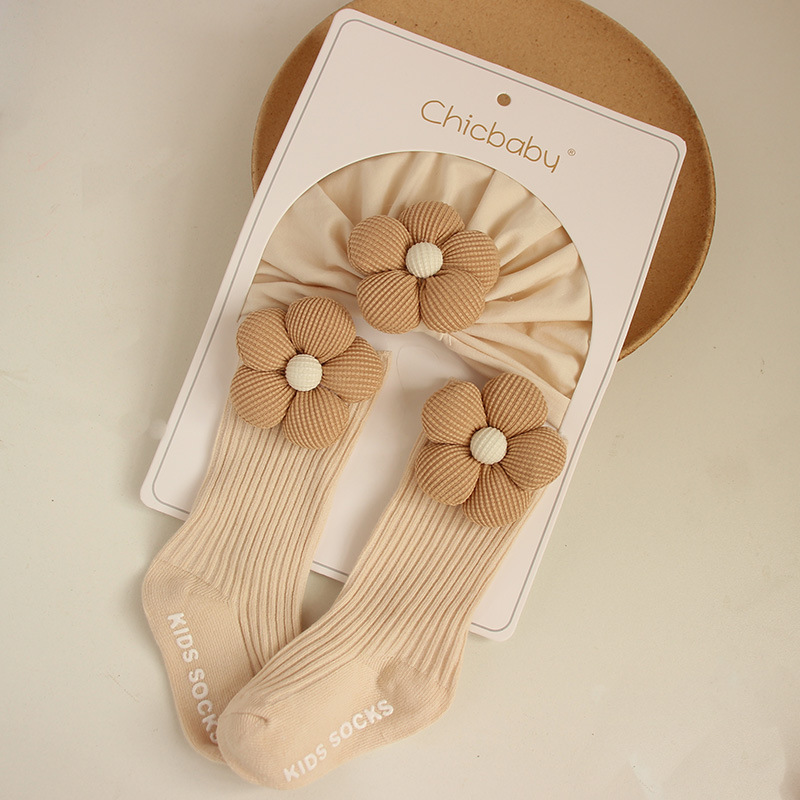 • 28 두꺼운 커피 베이지 꽃 모자 + 양말