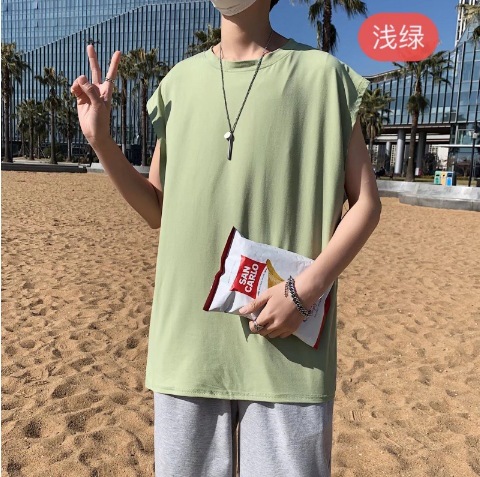时尚简约无袖T恤、篮球运动跑步健身纯色背心