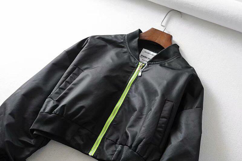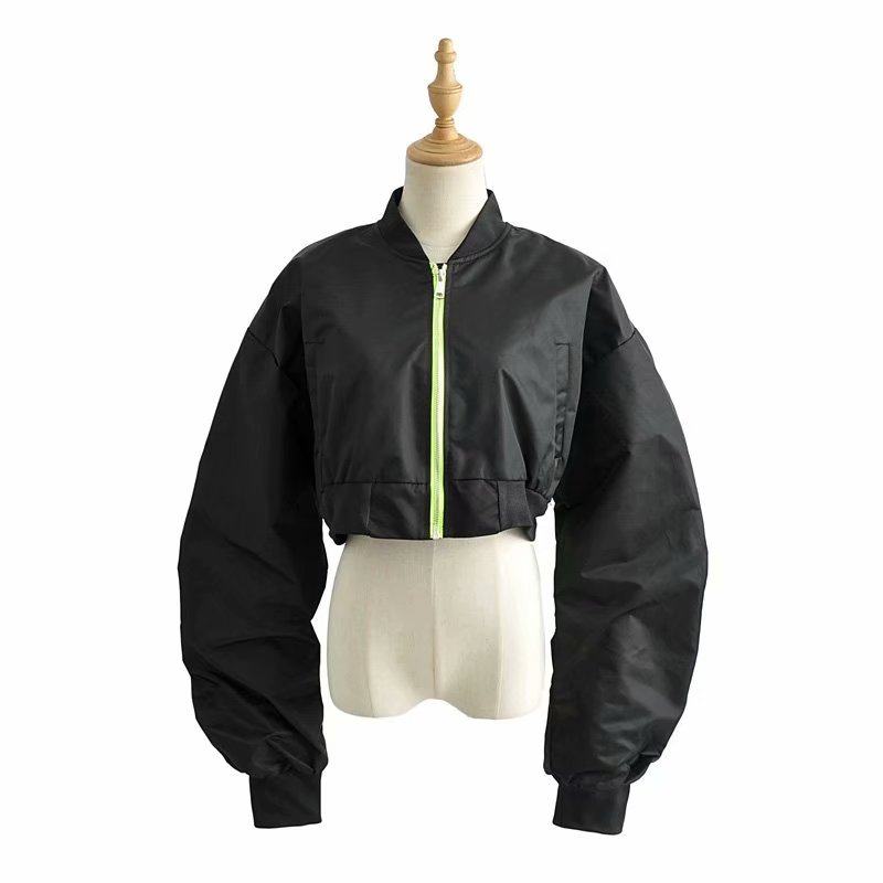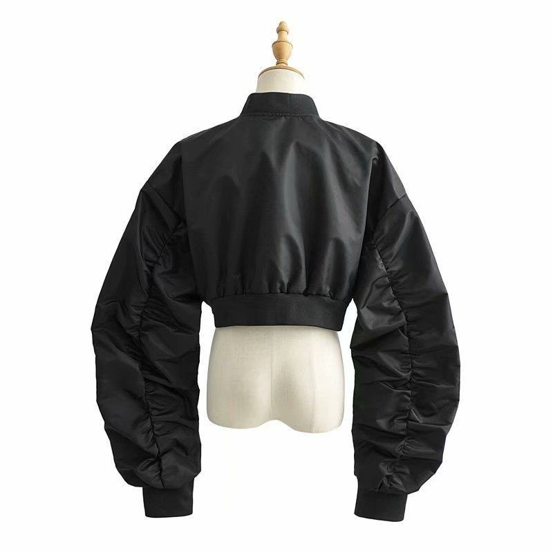유럽과 미국 블로거 가을 새로운 여성의 디자인 주름 소매 짧은 코트 높은 허리 노출 배꼽 폭격기 재킷 조수스토어 가기