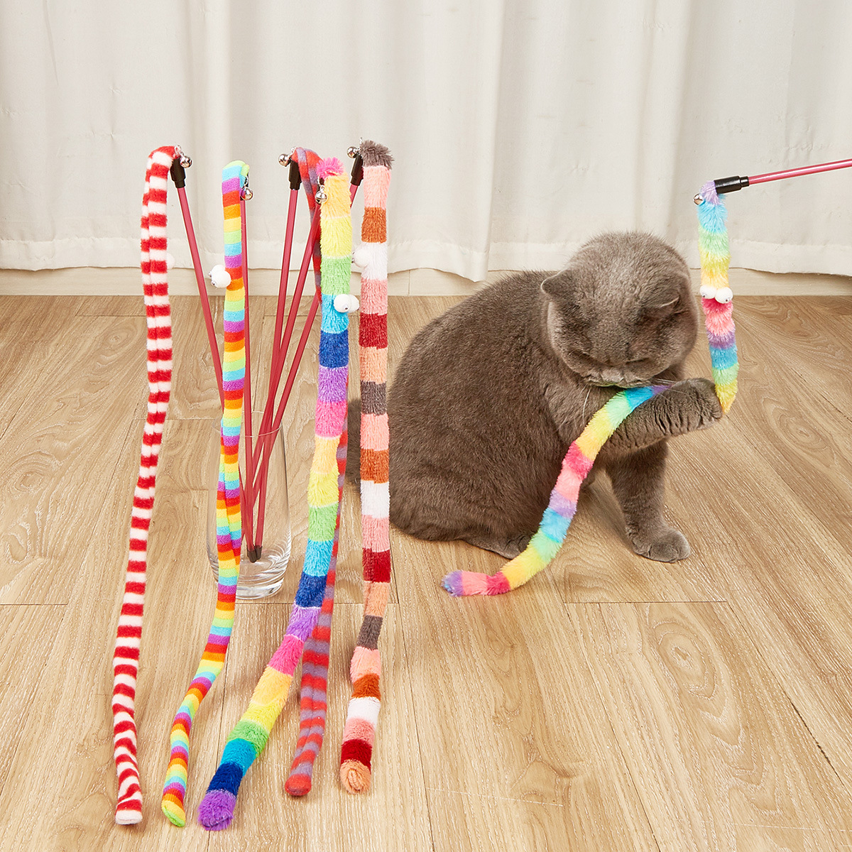 국경 간 제조 업체 새로운 고양이 스틱 교체 머리 큰 눈 긴 봉제 고양이 스틱 대화 형 답답한 고양이 장난감스토어 가기