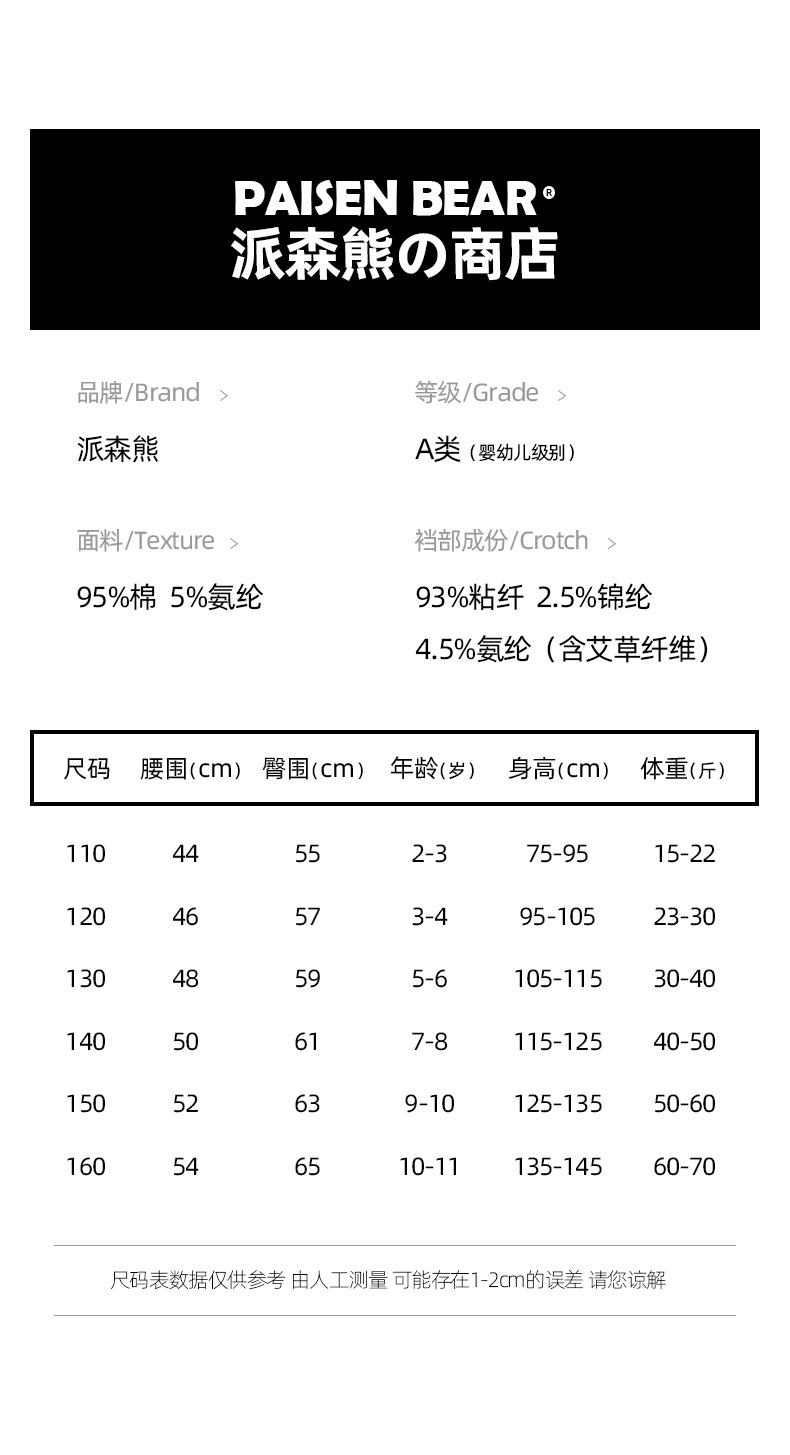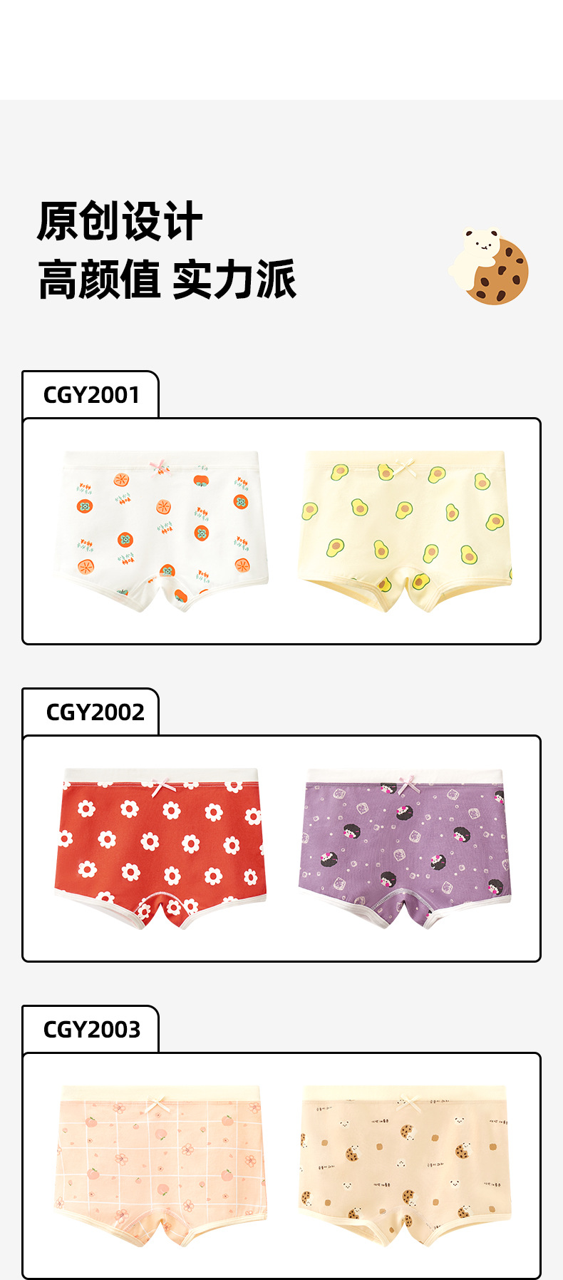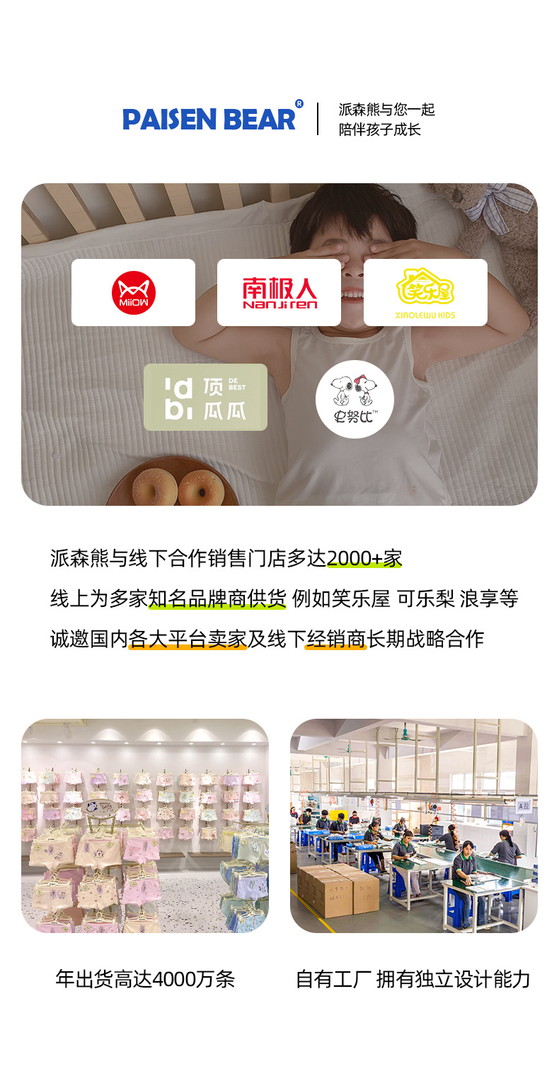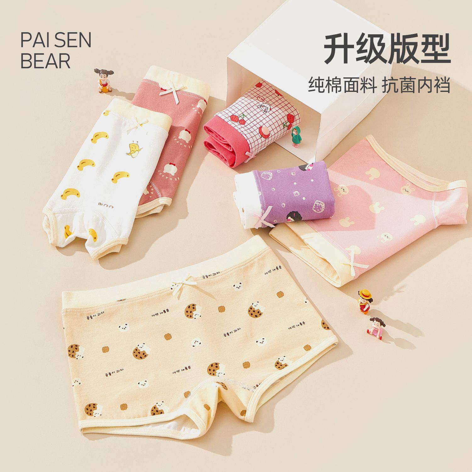 파이슨베어 아동용 속옷 순면 피부친화 통기성 항균 컬러블록 사각팬티 여아용 A급 순면 속옷 도매