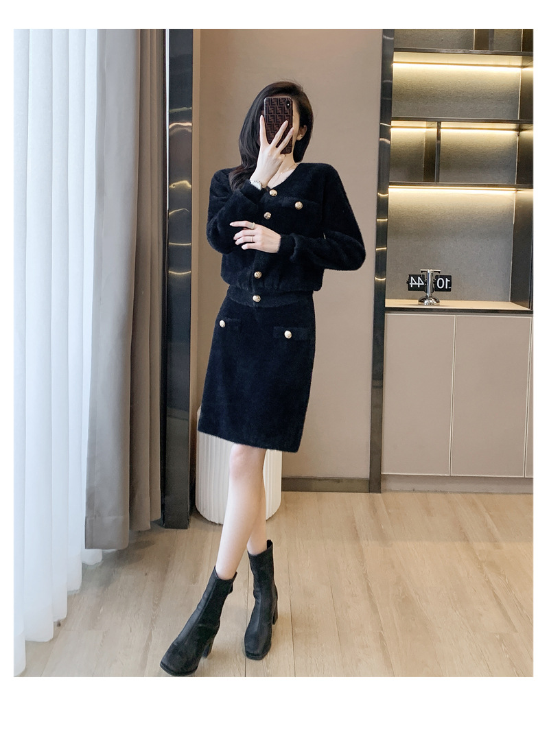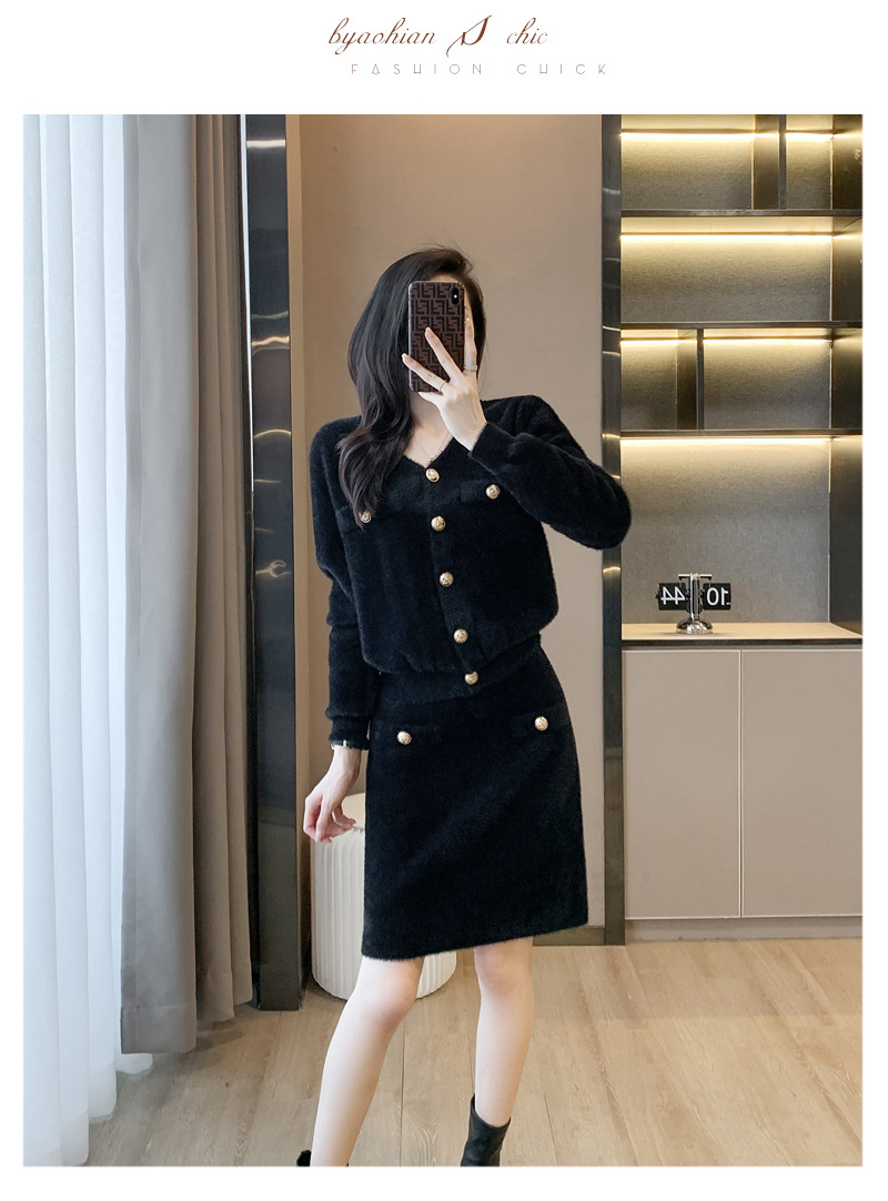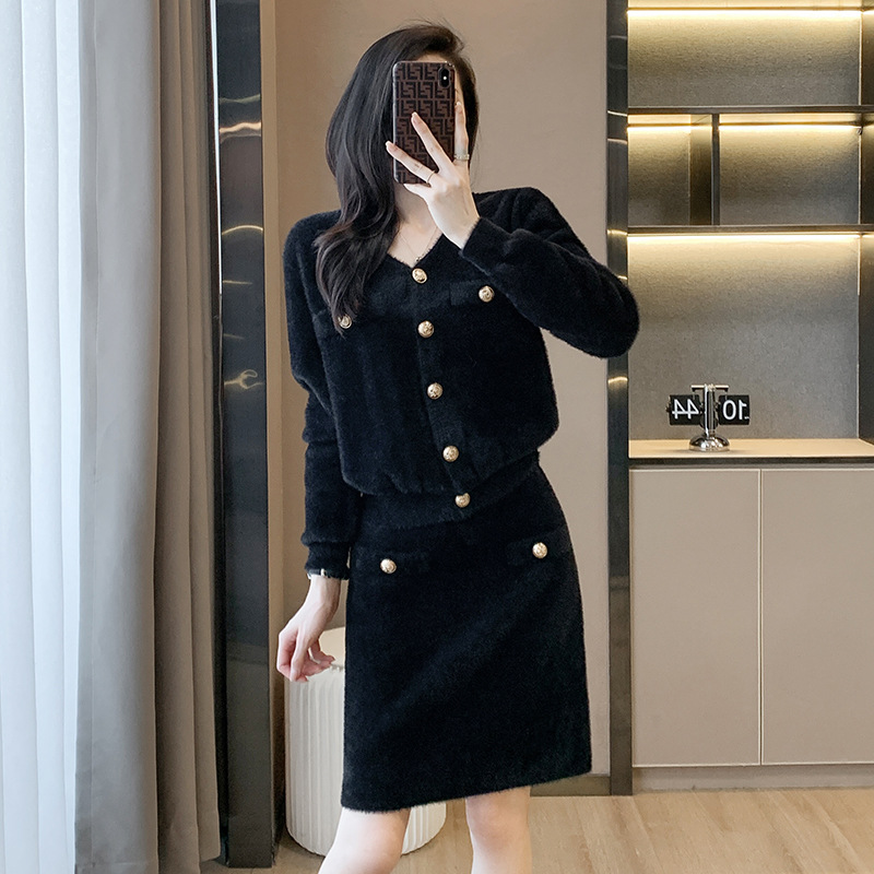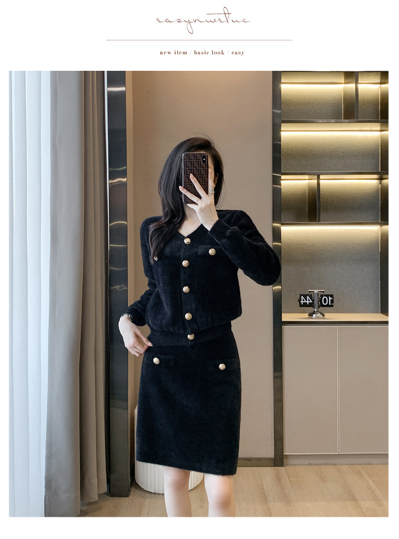 샤오샹풍 세트 2026 신상 여성 가을 겨울 스타일리쉬 여신풍 명사 패션 캐주얼 니트 투피스 세트 스커트스토어 가기