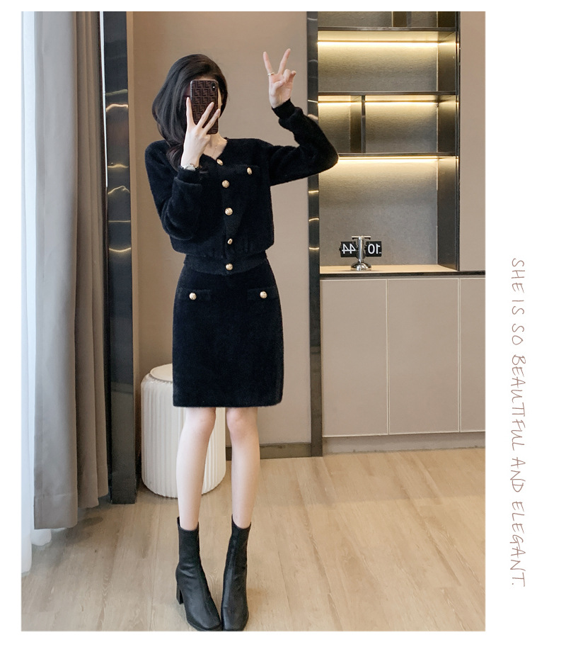 샤오샹풍 세트 2026 신상 여성 가을 겨울 스타일리쉬 여신풍 명사 패션 캐주얼 니트 투피스 세트 스커트