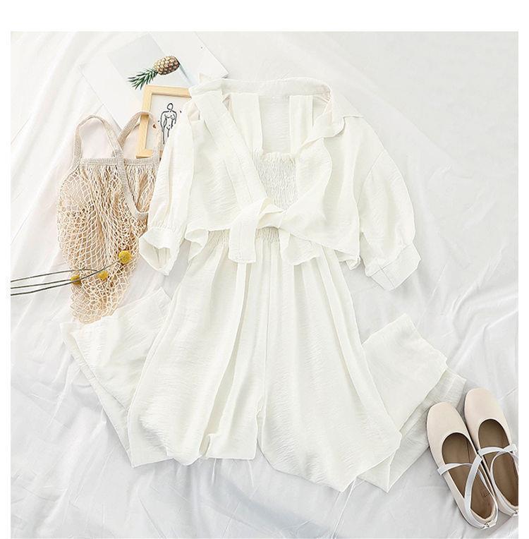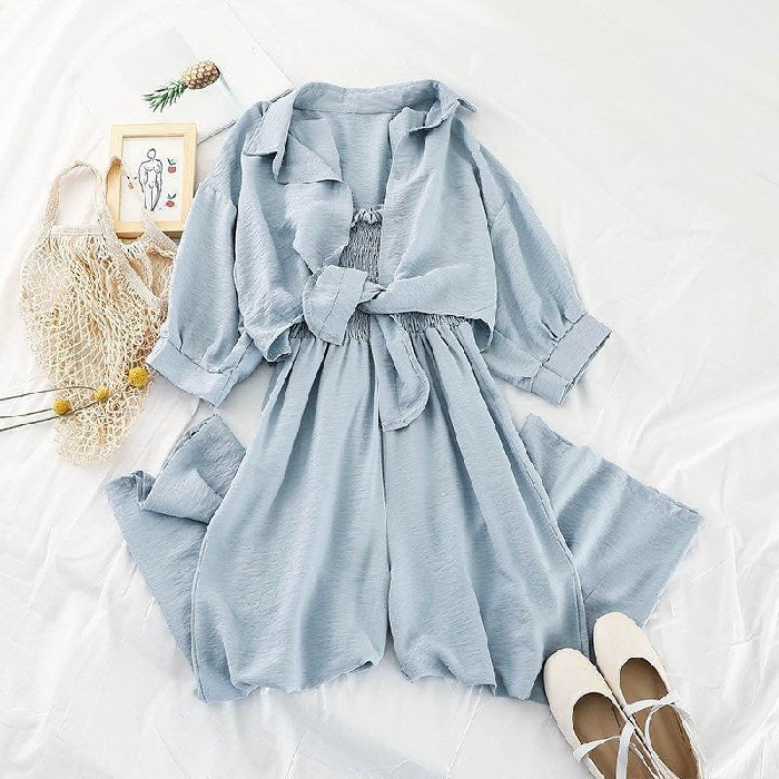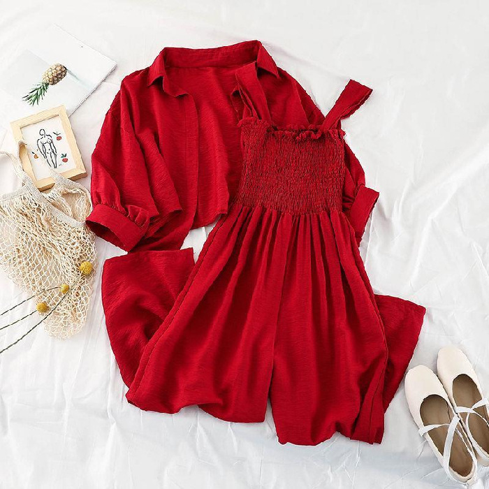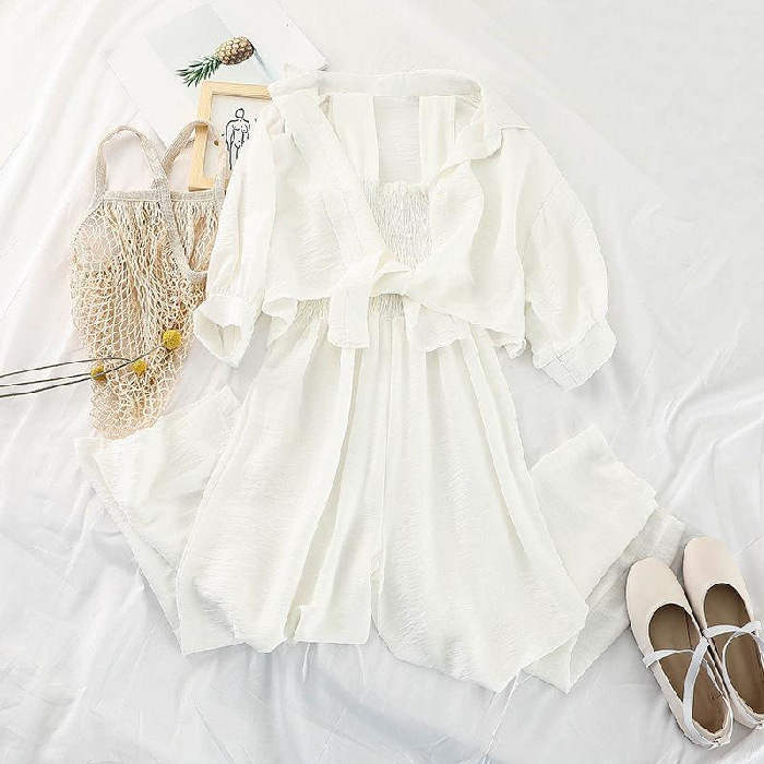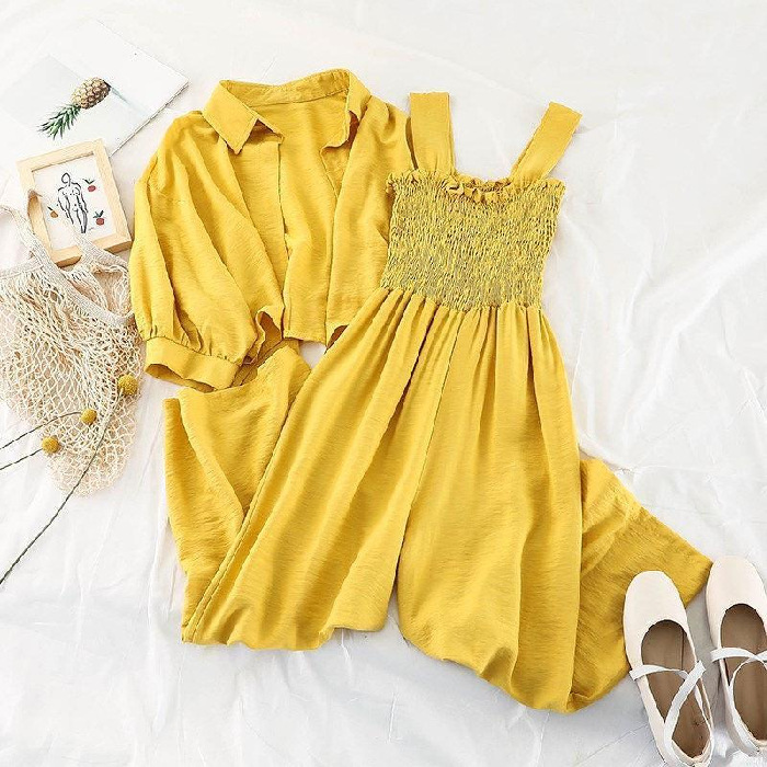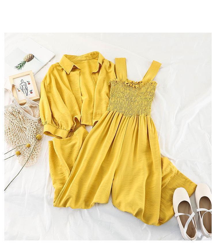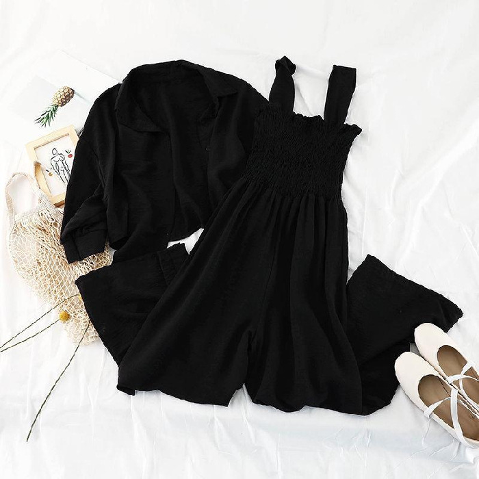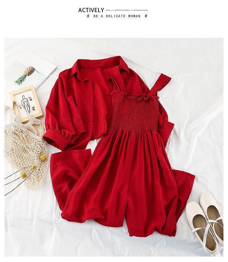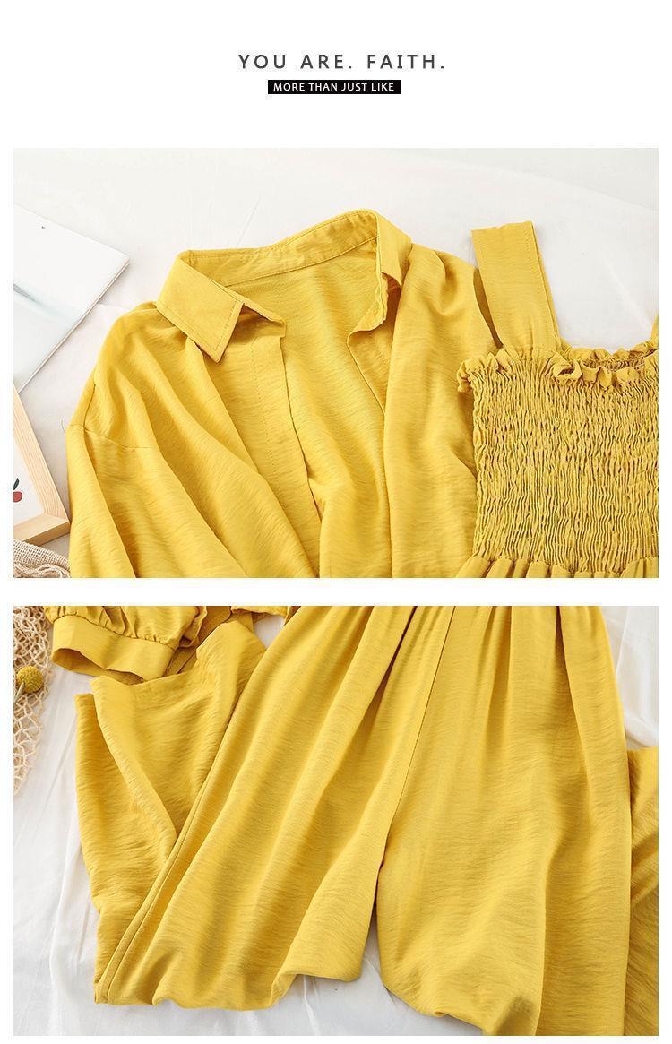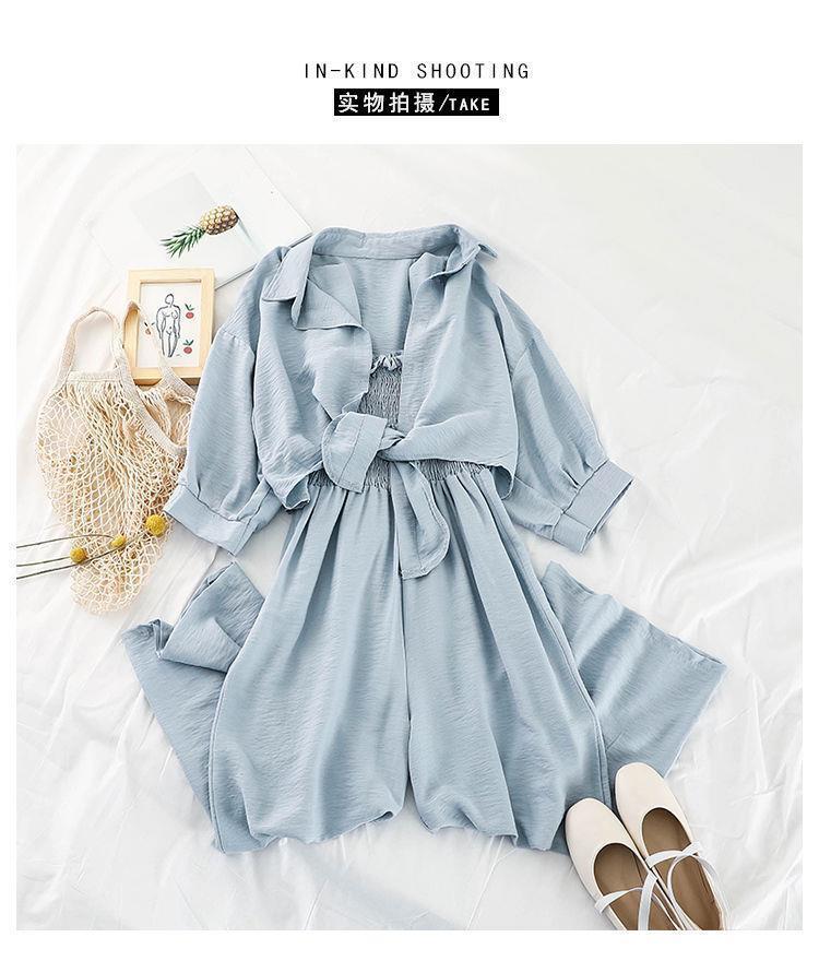 韩版连体裤时尚套装女新款春装外套防晒衣宽松吊带连衣裤两件套潮