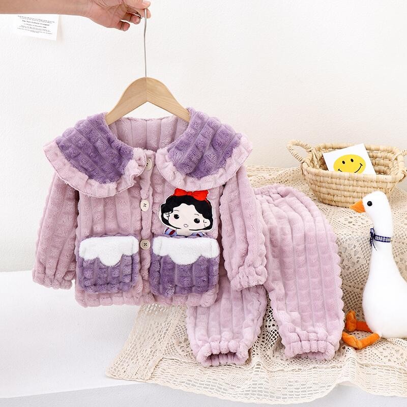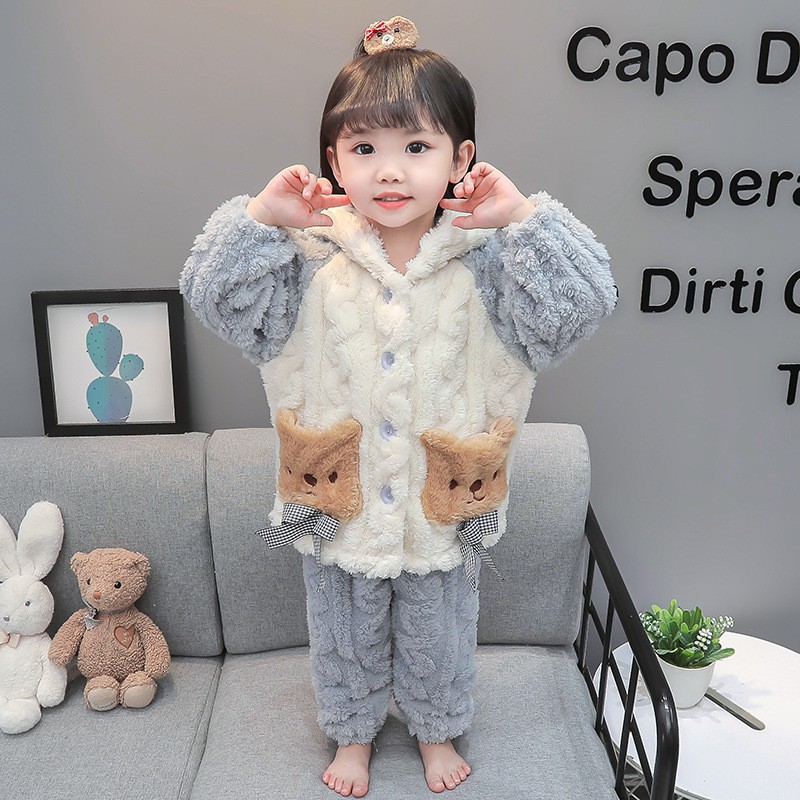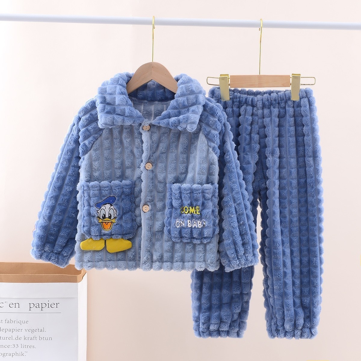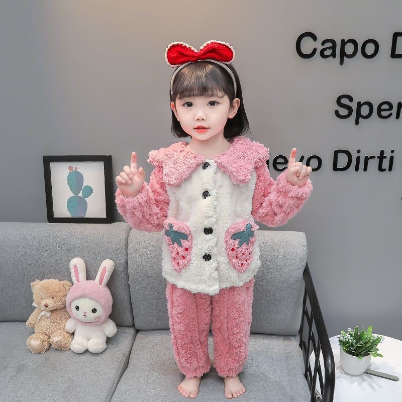 어린이 잠옷 플란넬 가을과 겨울 소년과 소녀 산호 양털 두꺼운 따뜻한 만화 귀여운 외국 스타일 가정 옷스토어 가기