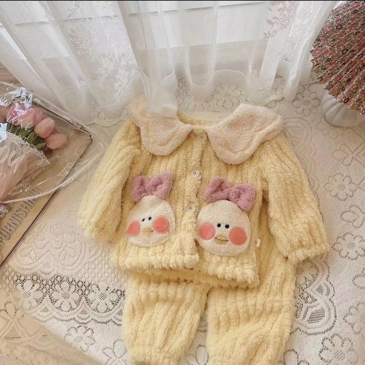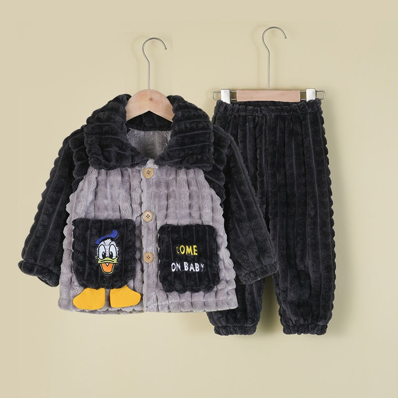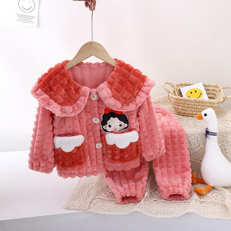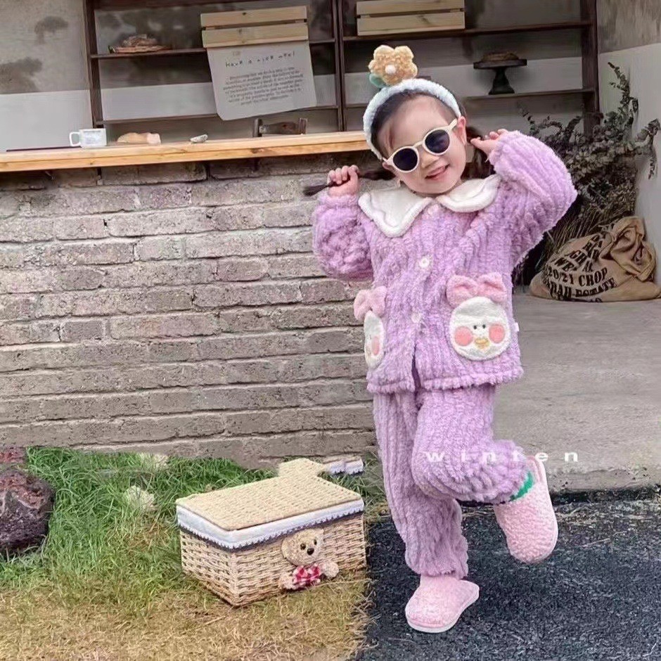 어린이 잠옷 플란넬 가을과 겨울 소년과 소녀 산호 양털 두꺼운 따뜻한 만화 귀여운 외국 스타일 가정 옷