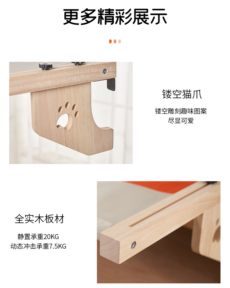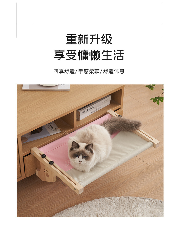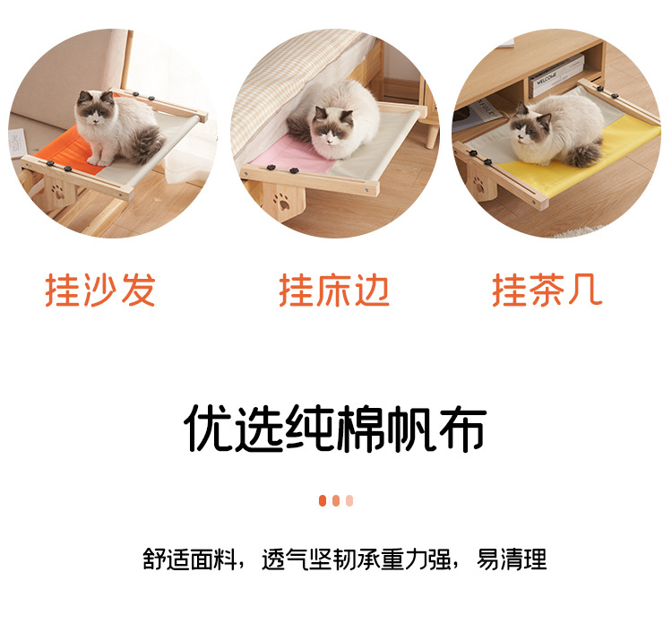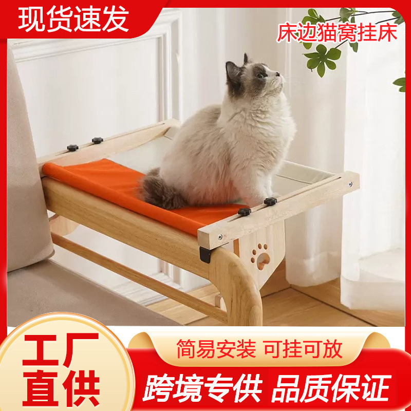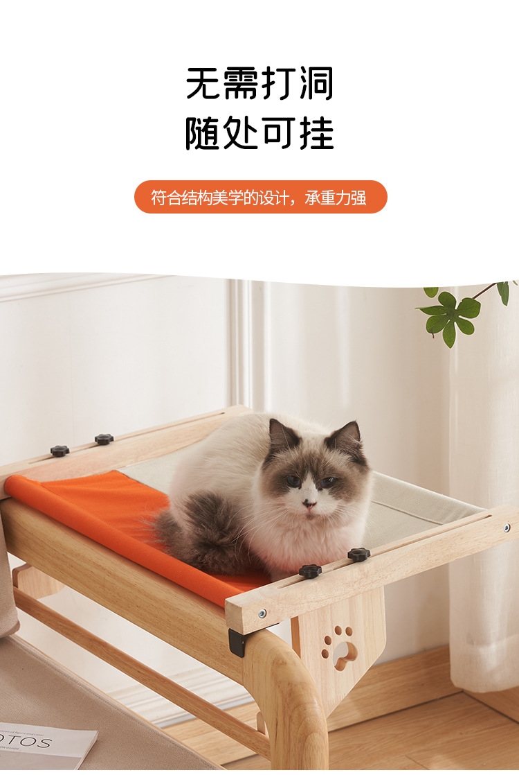 단단한 나무 고양이 교수형 침대 발코니 창 고양이 해먹 침대 옆 벨크로 고양이 둥지 고양이 침대 내 하중 15kg 거실 고양이 둥지스토어 가기