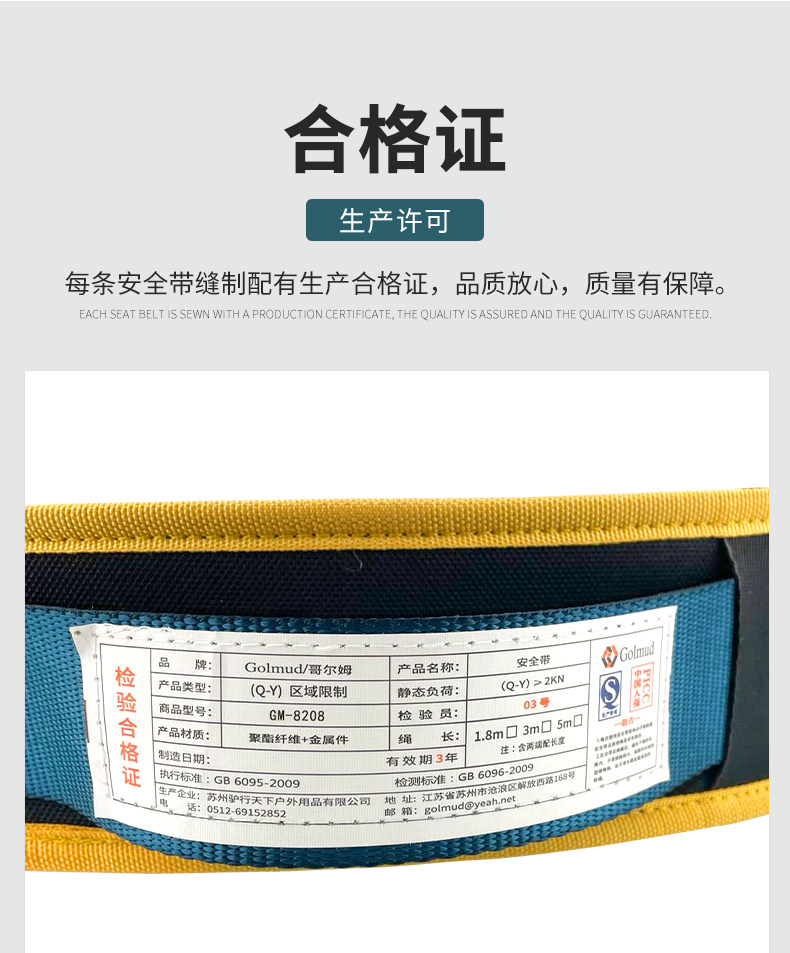 골무드 안전 벨트 싱글 허리형 허리 보호 전기공 공사 안전 벨트 싱글 후크 안전 로프 GM8208