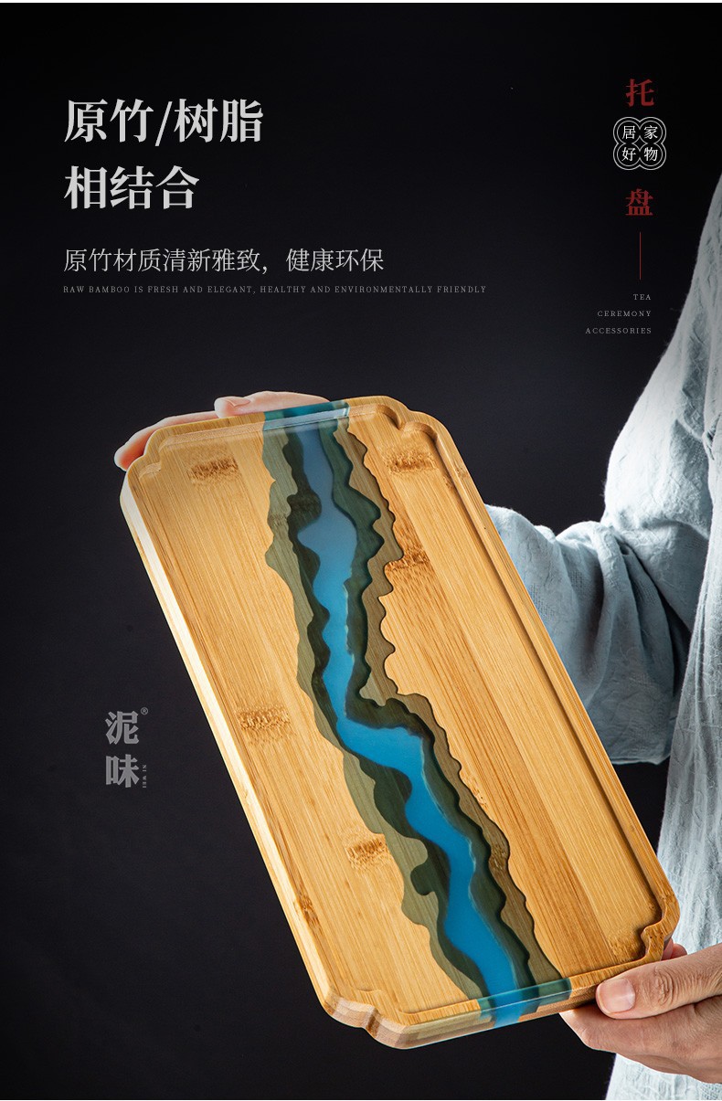야베이수지 건조차포장 일본식 나무 트레이 수제 원목 주전자 받침대 작은 차 트레이 트레이 건조차포장 직사각형