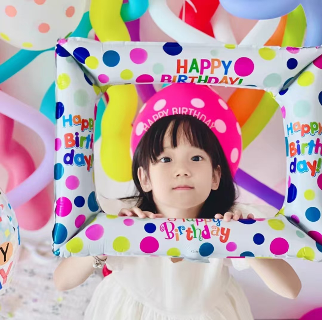 만화 생일 케이크 아기 세 소녀 풍선 소년 파티 레이아웃 어린이 디지털 장면 장식 사진스토어 가기
