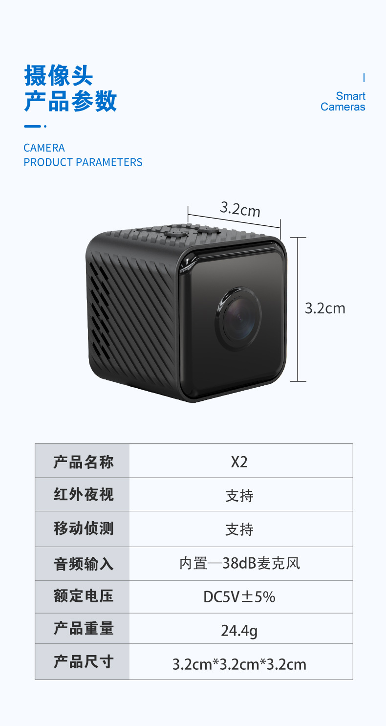 X2 소형 사각 카메라 HD 1080p 적외선 야간 투시경 홈 시큐리티 와이파이 카메라 모션 DVD 카메라스토어 가기