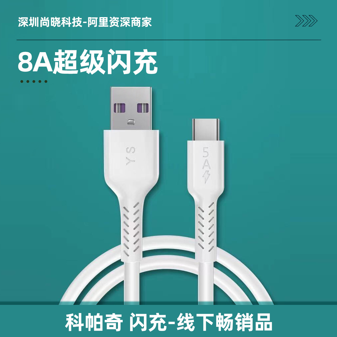 支持原装配机原装充电头,5A大电流,稳定电流                               采用环保TPE线材,增加防断丝,耐弯曲抗拉,增加铝箔层,屏蔽防干扰,安全快充无障碍;高达180根铜丝,更能稳定的输出电流。               适用超级快充,超级闪充机型