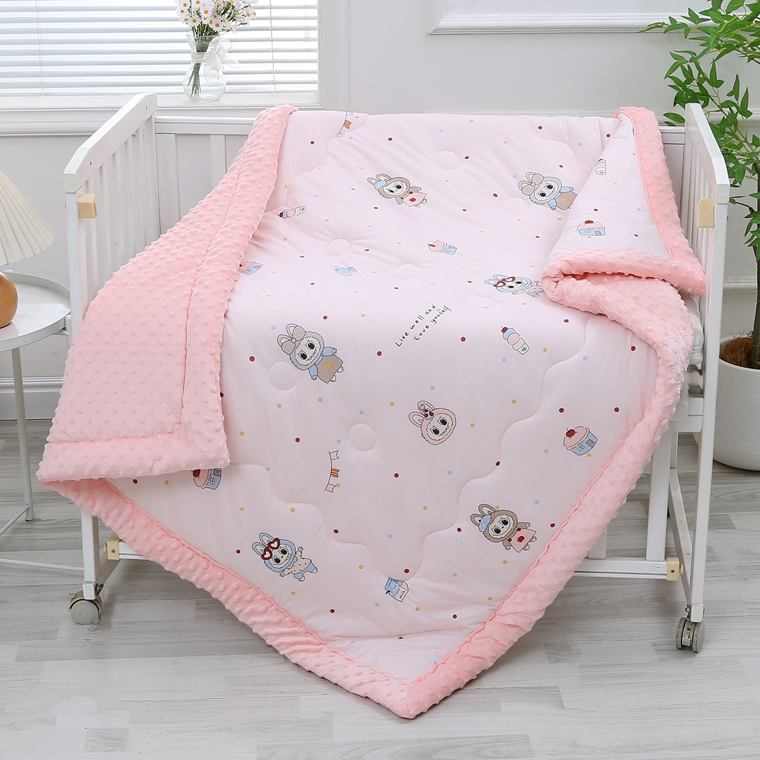 特点:德国3D按摩豆豆被,辅助睡眠 安抚宝宝入睡,还能刺激宝宝触觉,让宝宝养成独立睡眠还习惯,正面针织棉,柔软顺滑,亲肤无刺激,吸汗透气性强,中间夹层整张羽丝填充 ,保持内芯不移位,不跑棉,用途广泛,可做安抚毯,盖毯,保暖抱毯,婴儿车毯,室内游戏毯,成人也可搭膝盖,披肩用