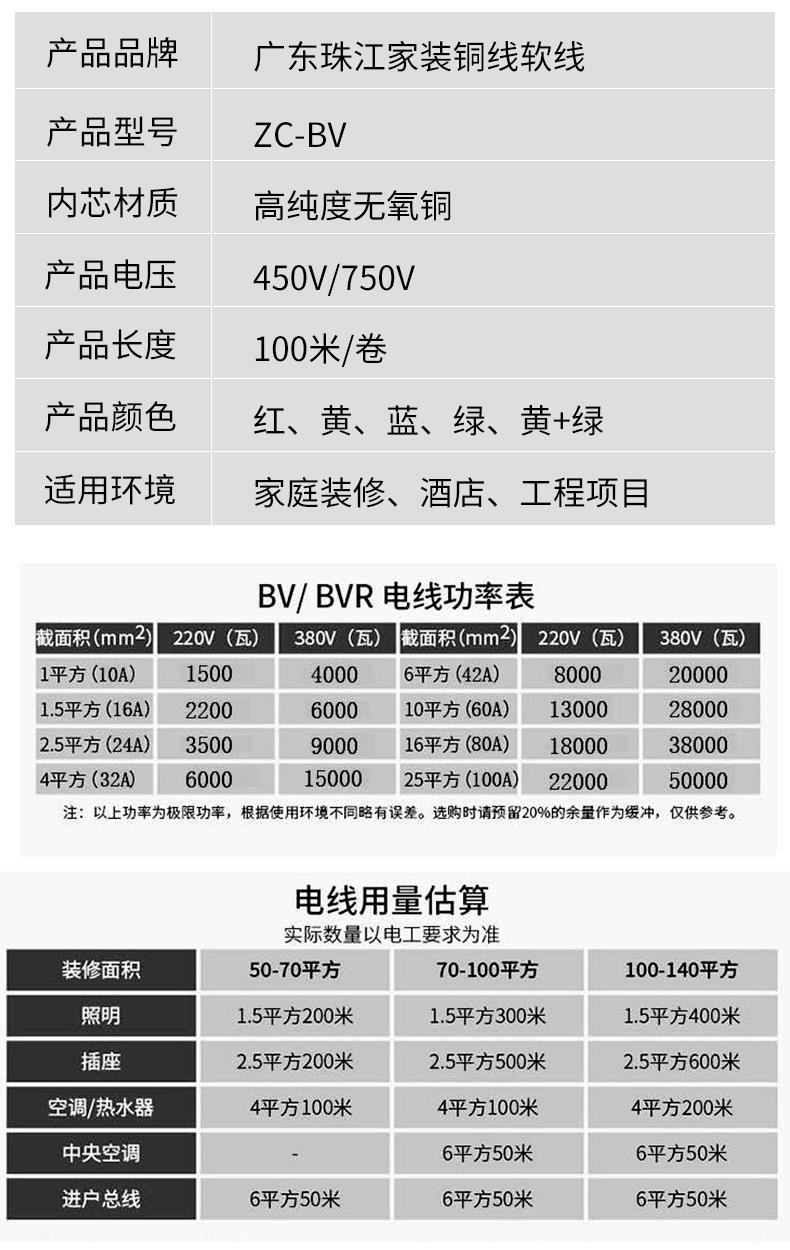 광동 Zhujiang 전선 ZC-BV 순수 구리 코어 GB 1.5 2.5 4 사각 난연 가정용 단일 가닥 하드 와이어