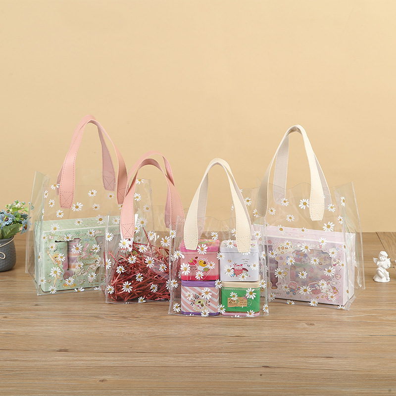 공장 도매 손 선물 가방 작은 데이지 핸드백 pvc 핸드백 작은 국화 플라스틱 포장 가방 재고