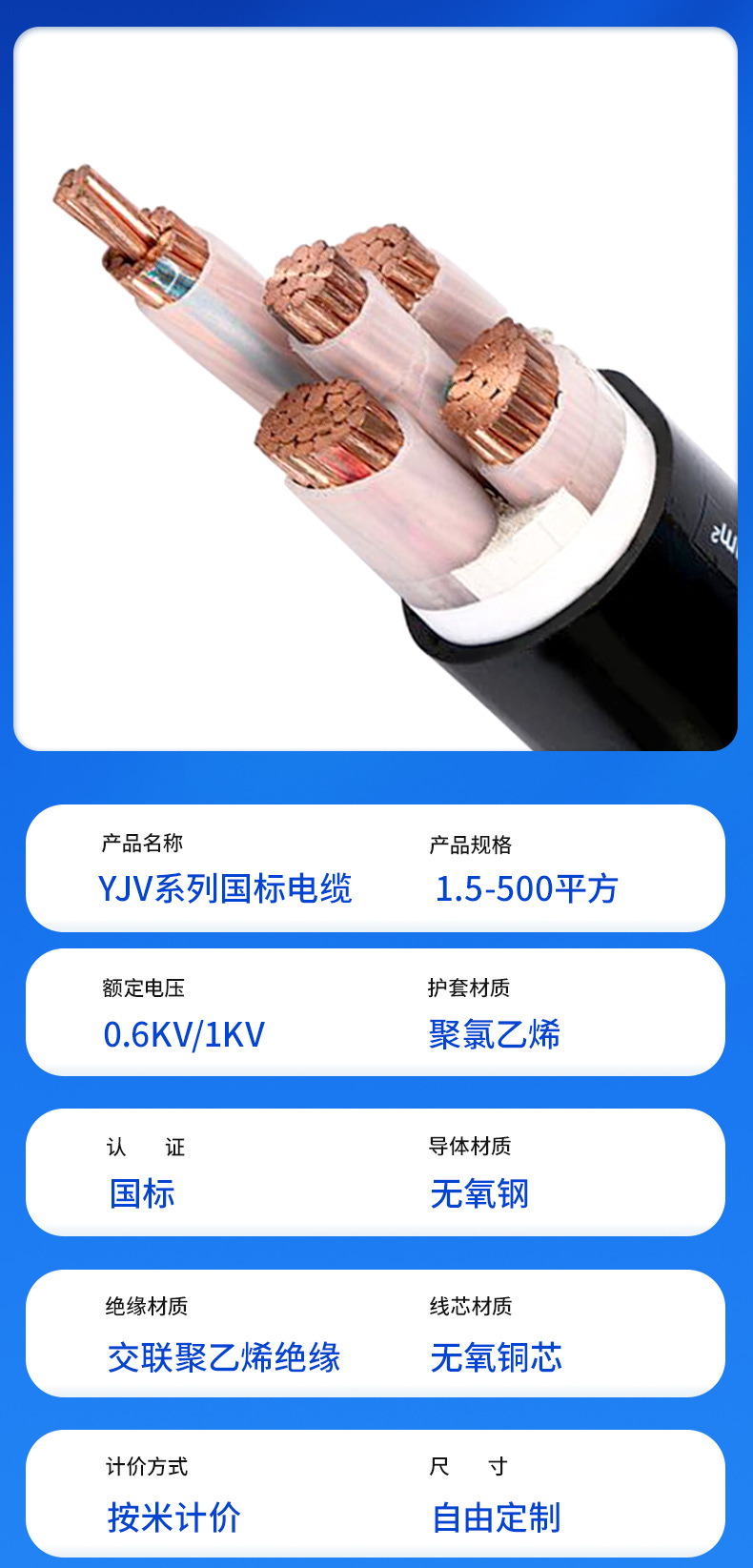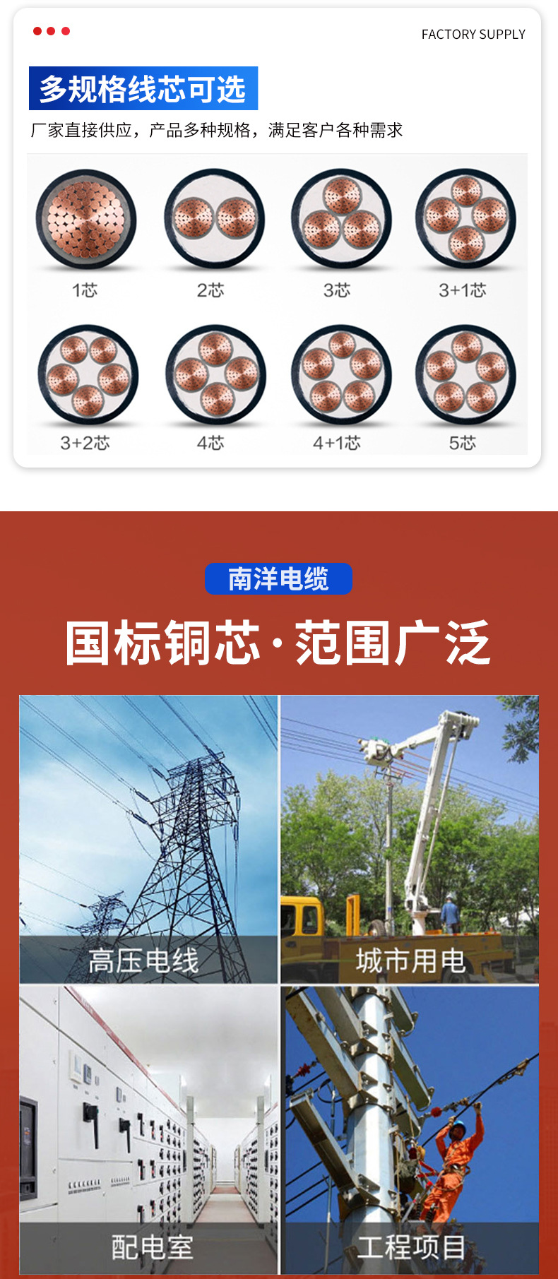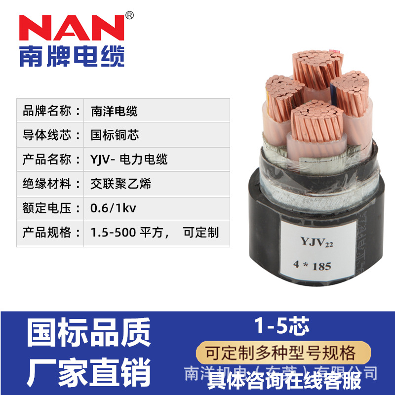 난양 케이블 VV/YJV 3*70 + 2*35 3 상 5 선 구리 코어 국가 표준 남 브랜드 전원 케이블 공장 콘센트
