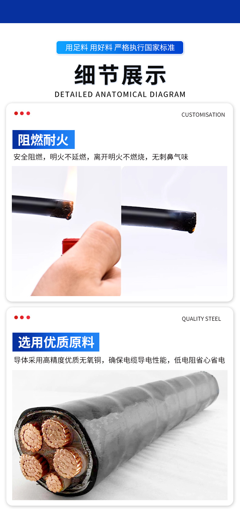 난양 케이블 VV/YJV 3*70 + 2*35 3 상 5 선 구리 코어 국가 표준 남 브랜드 전원 케이블 공장 콘센트스토어 가기