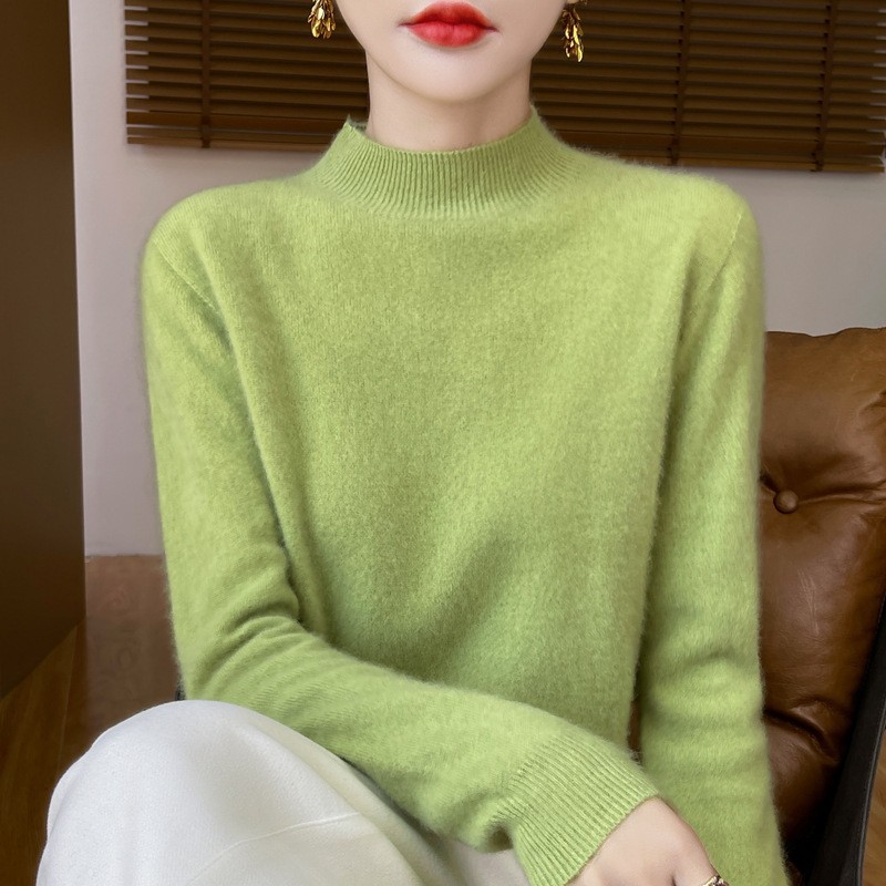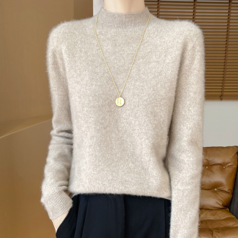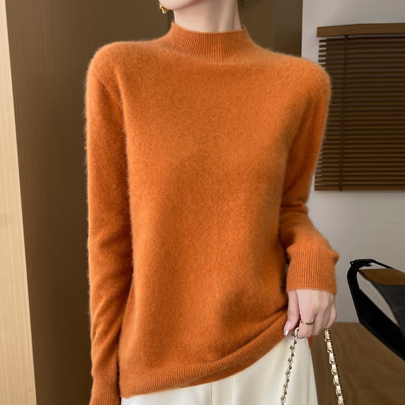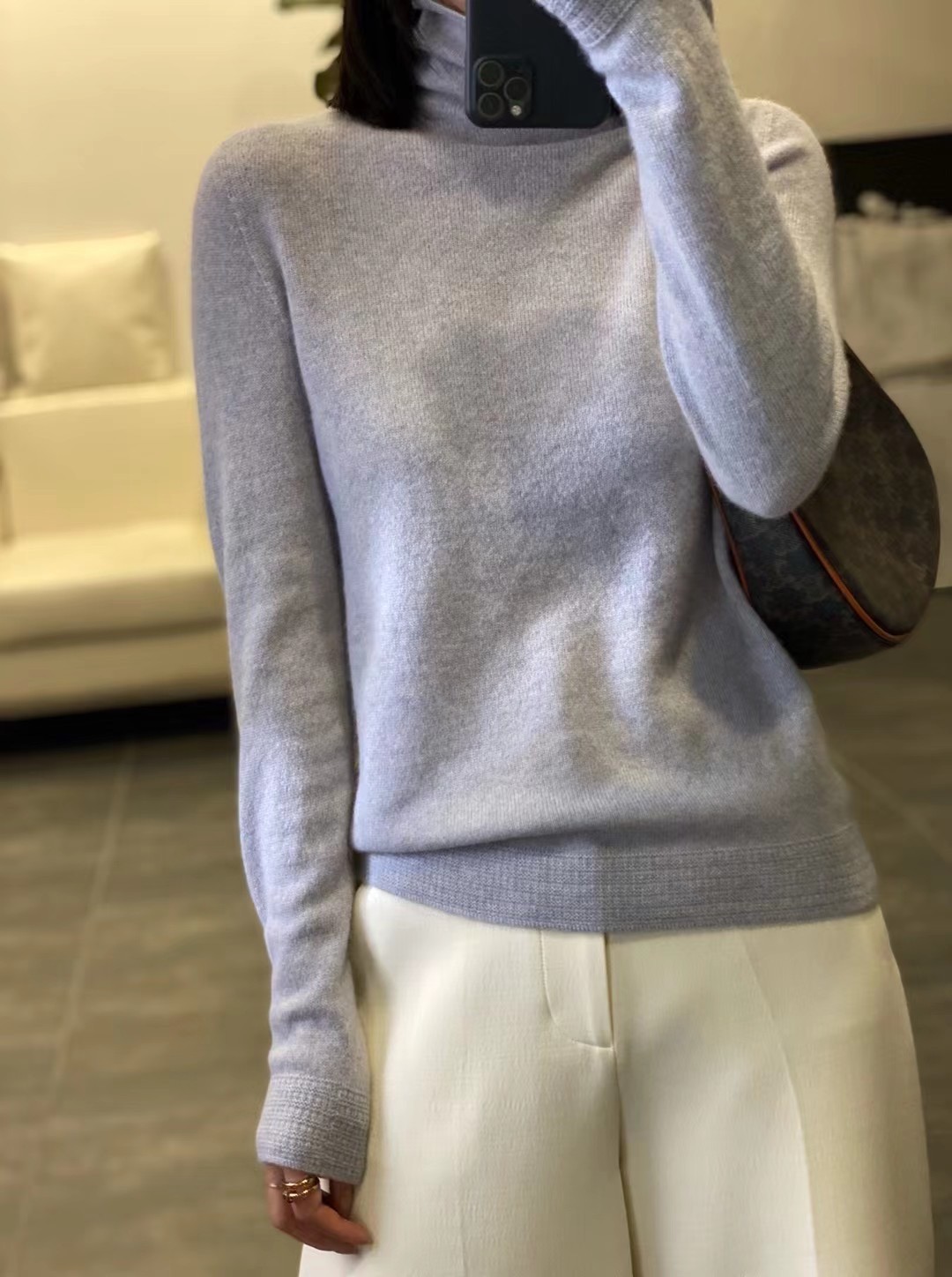 쌓인 칼라 울 스웨터 여성용 100 순수 울 가을과 겨울 하이 칼라 세련된 내부 얇은 니트베이스 캐시미어 스웨터