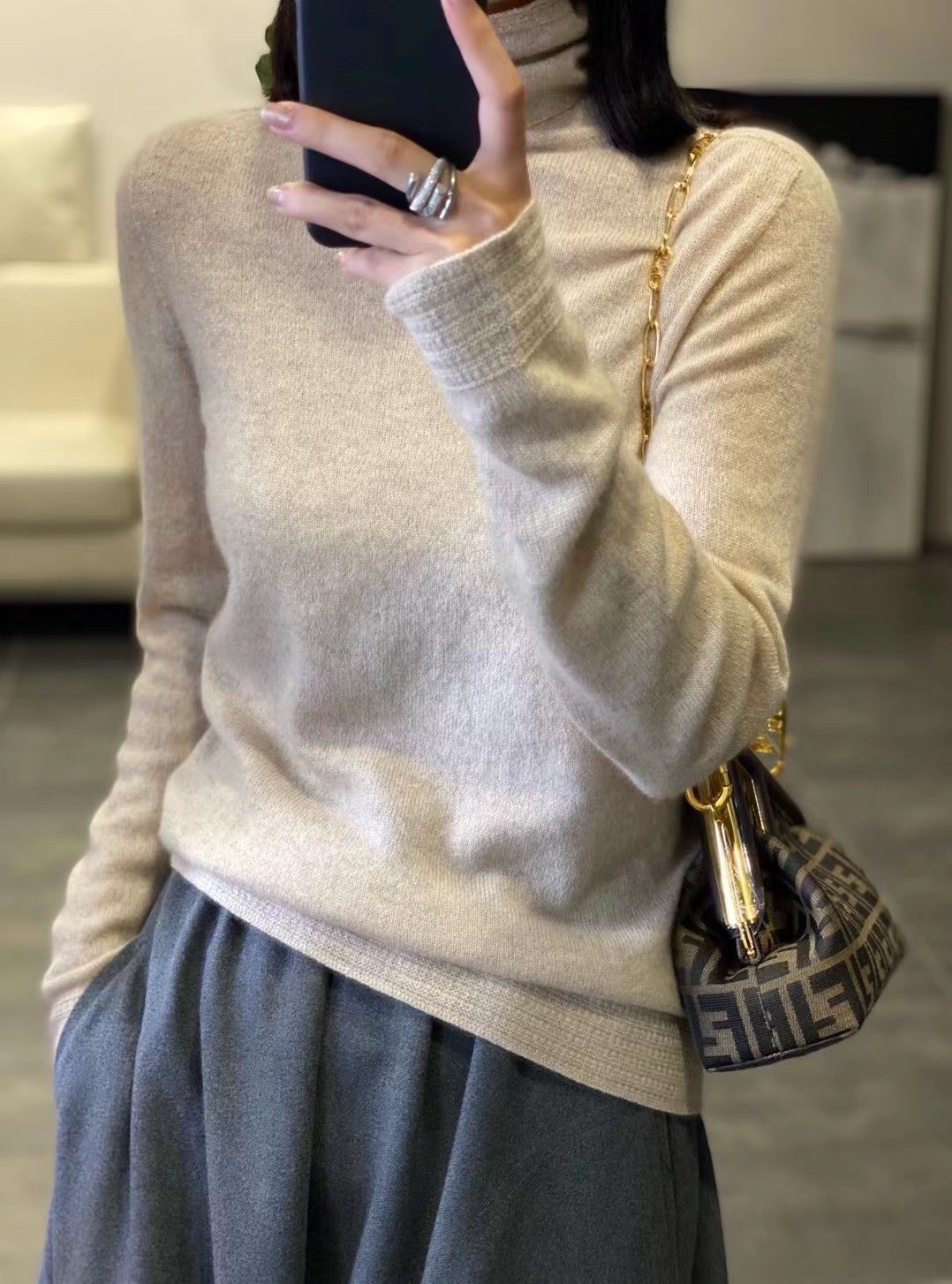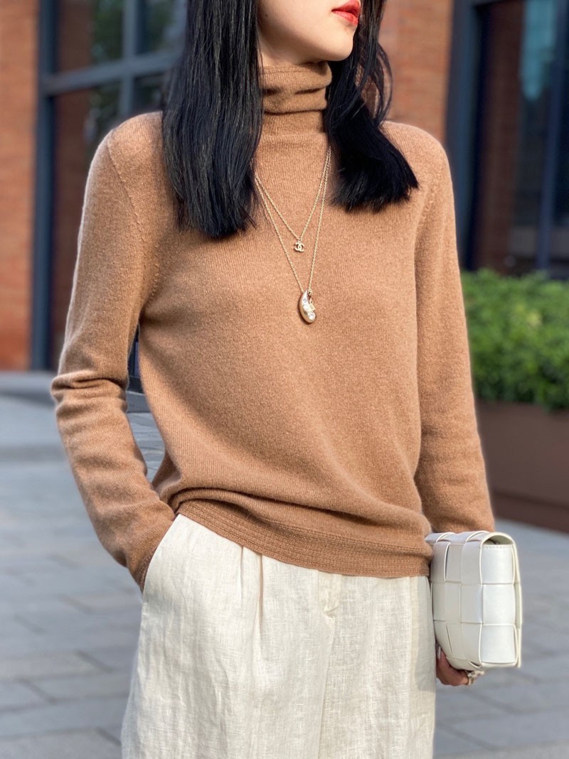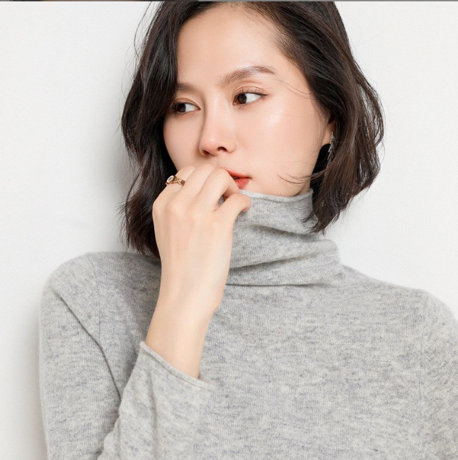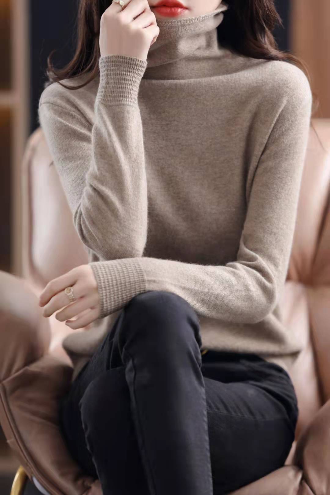 쌓인 칼라 울 스웨터 여성용 100 순수 울 가을과 겨울 하이 칼라 세련된 내부 얇은 니트베이스 캐시미어 스웨터스토어 가기