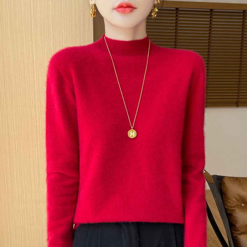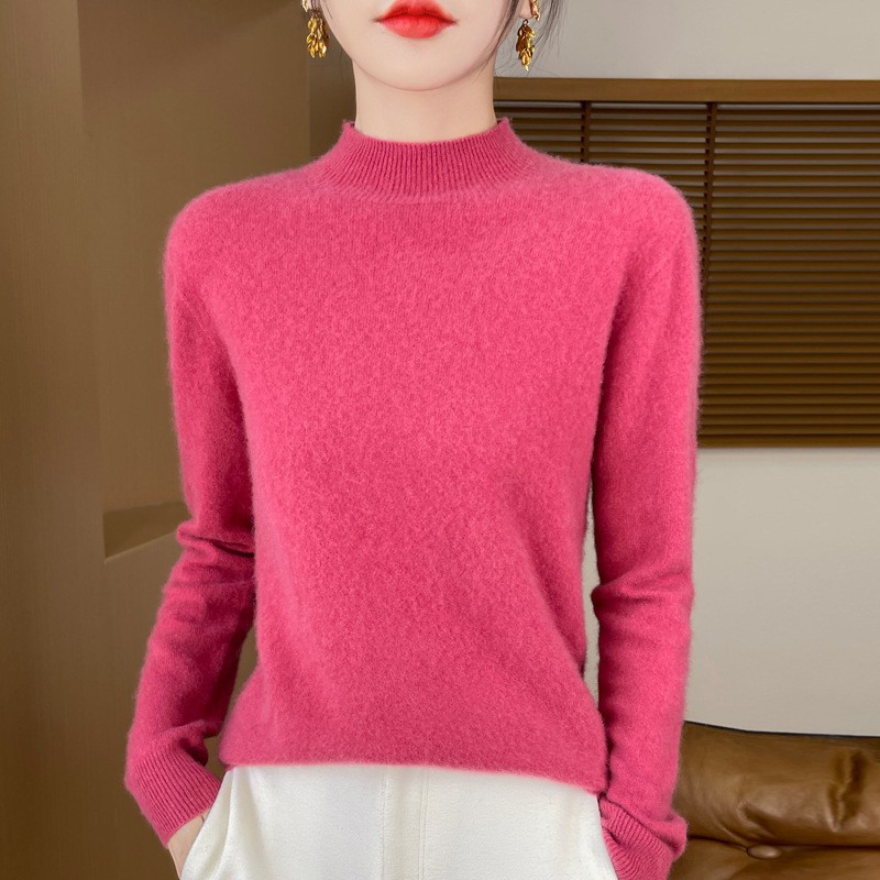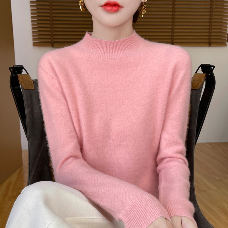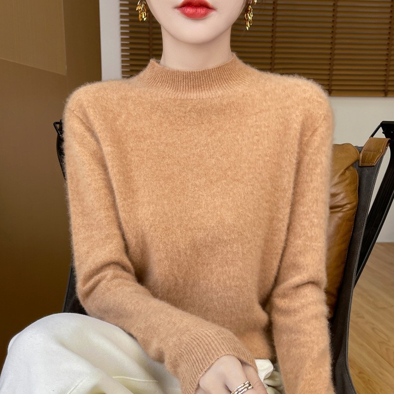 쌓인 칼라 울 스웨터 여성용 100 순수 울 가을과 겨울 하이 칼라 세련된 내부 얇은 니트베이스 캐시미어 스웨터스토어 가기