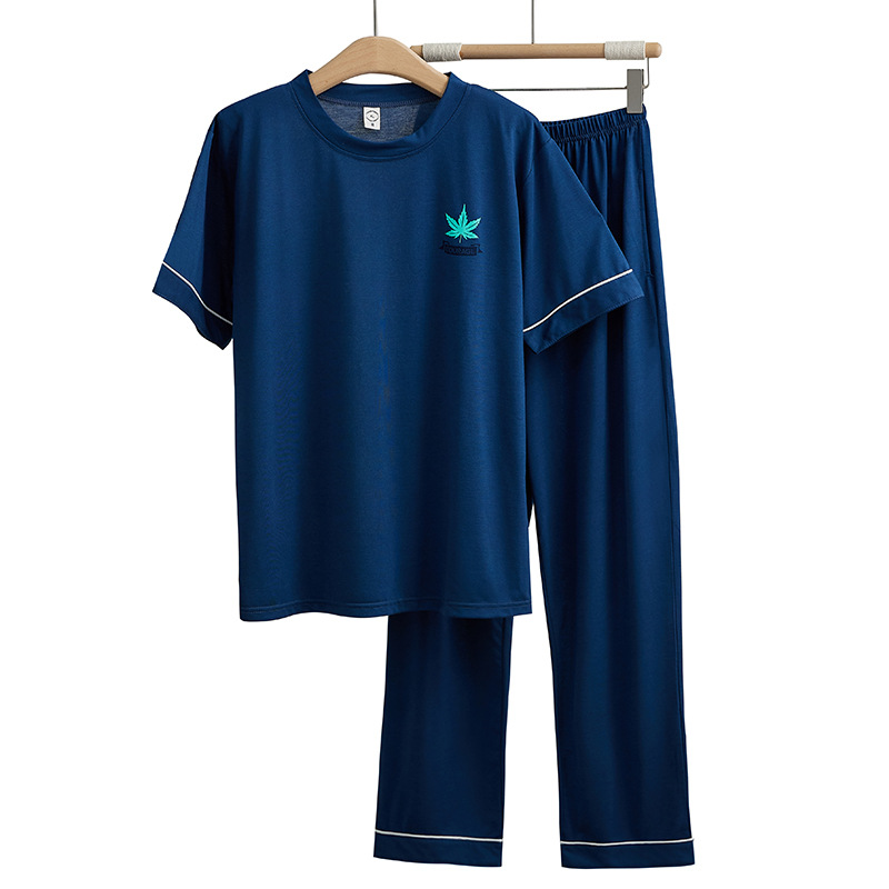 • 파란색 둥근 목 바지 세트