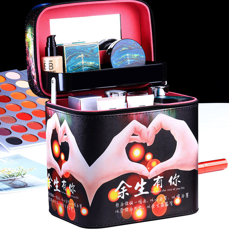 便携皮质化妆包收纳包大容量硬壳化妆品收纳盒旅行韩国小号手提箱