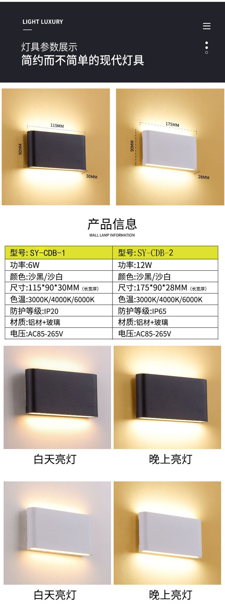Led 야외 벽 램프 위아래로 빛나는 간단한 거실 연구 배경 벽 계단 창조적 인 통로 침실 침대 옆 램프스토어 가기
