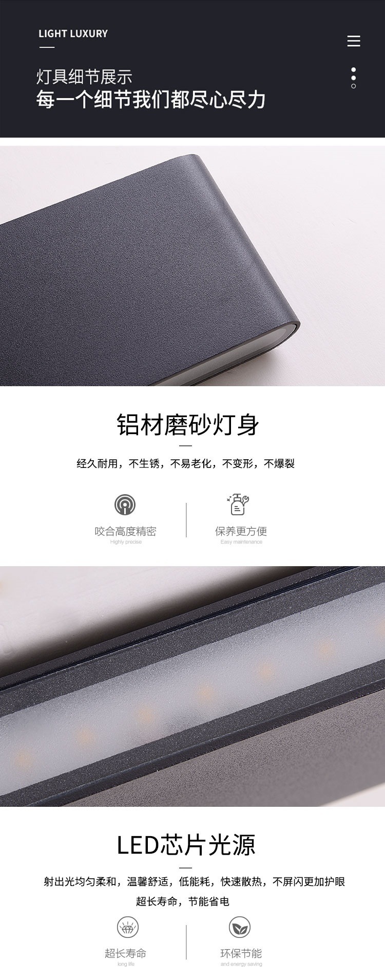 Led 야외 벽 램프 위아래로 빛나는 간단한 거실 연구 배경 벽 계단 창조적 인 통로 침실 침대 옆 램프