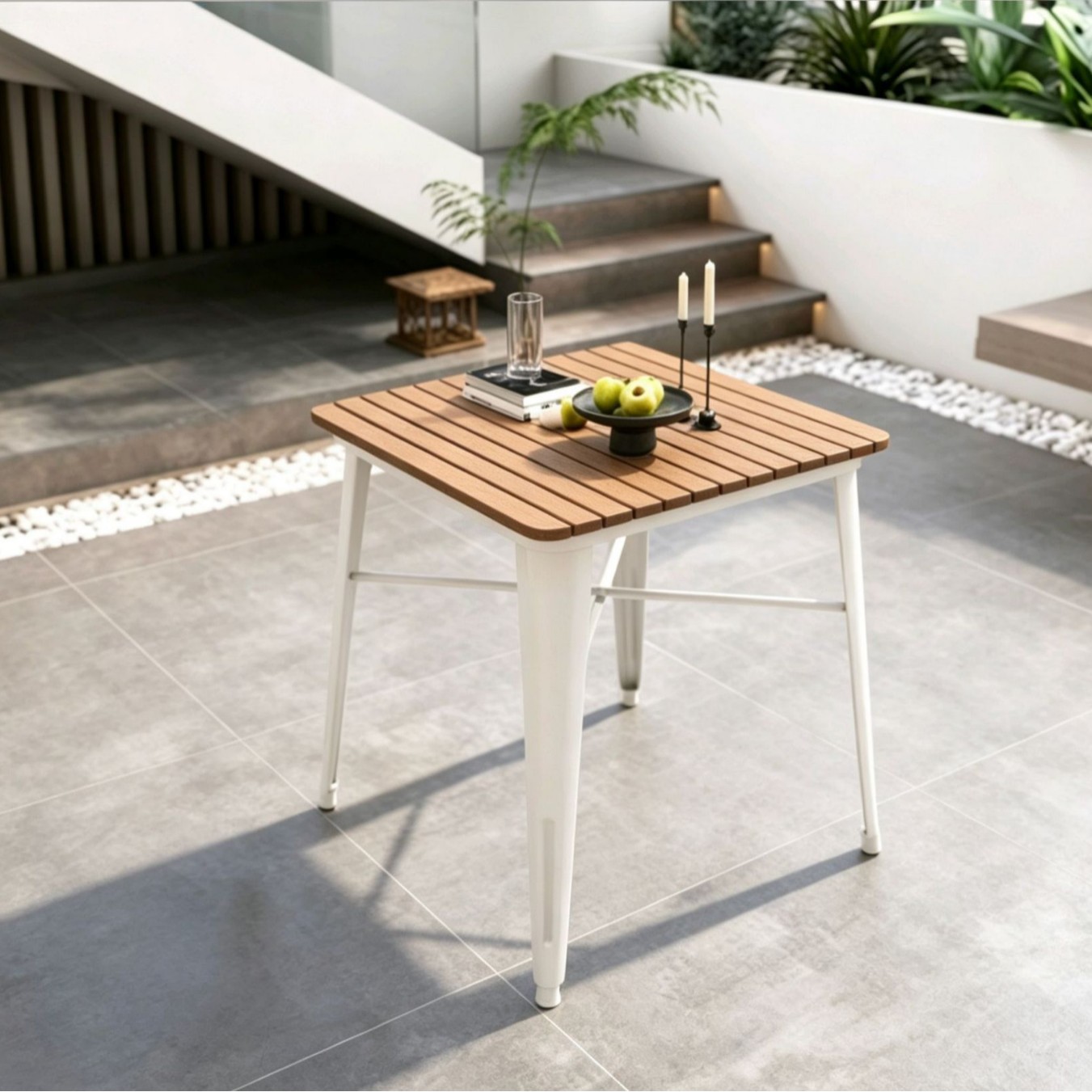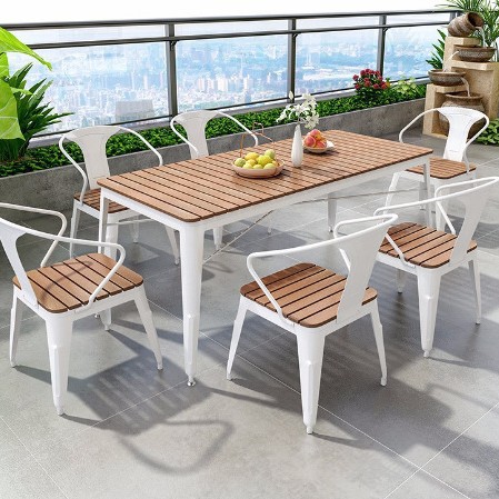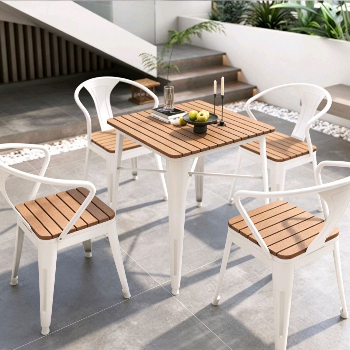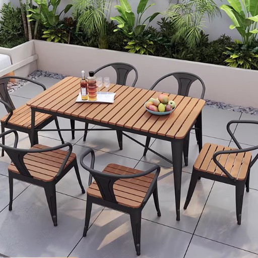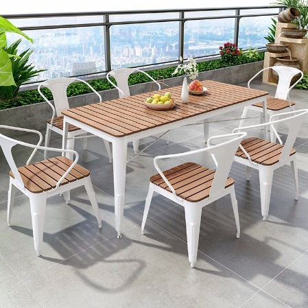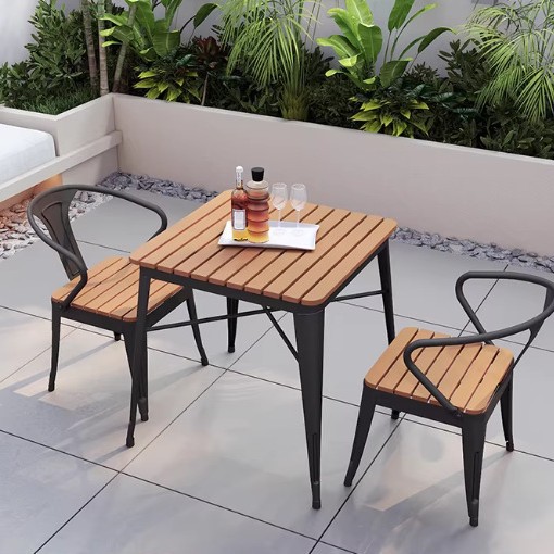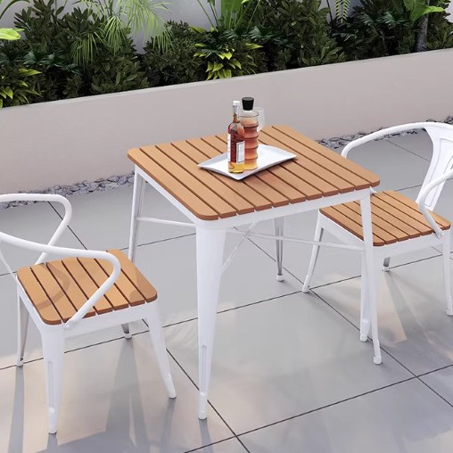 야외 플라스틱 목재 테이블과 의자, 안뜰 부식 방지 목재 야외 레저 식탁, 정원 야외 발코니, 카페 테이블과 의자 조합