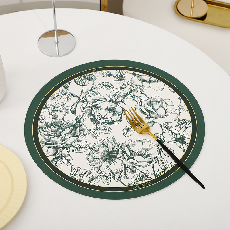 새로운 잉크 페인팅 가죽 플레이스매트 식탁 장식 플레이스매트 서양 플레이스매트 방수 내유성 단열 매트 컵 티 매트