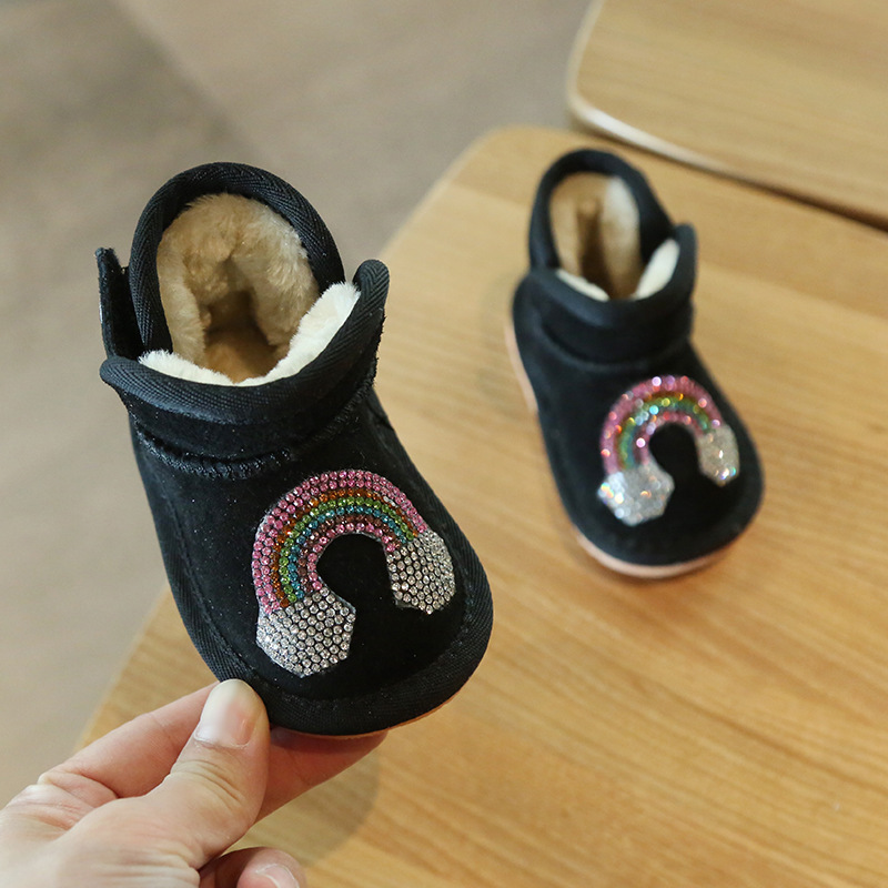 특가 아기 공주 가죽 신발 유아용 마틴 부츠 겨울용 플리스 안감 면화 신발 여아용 숏부츠 걸음마 신발스토어 가기