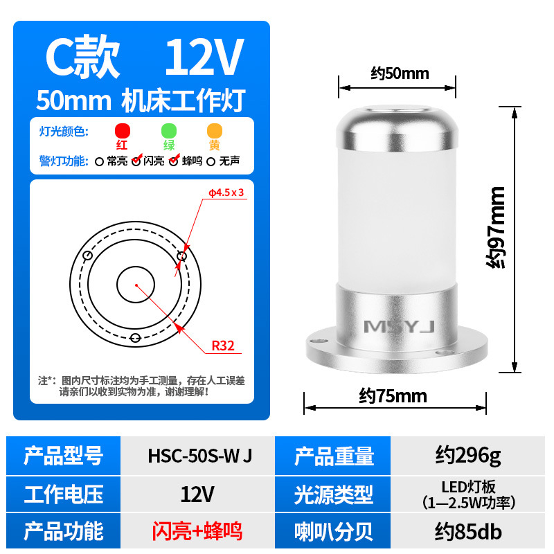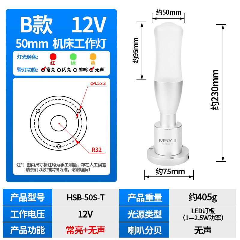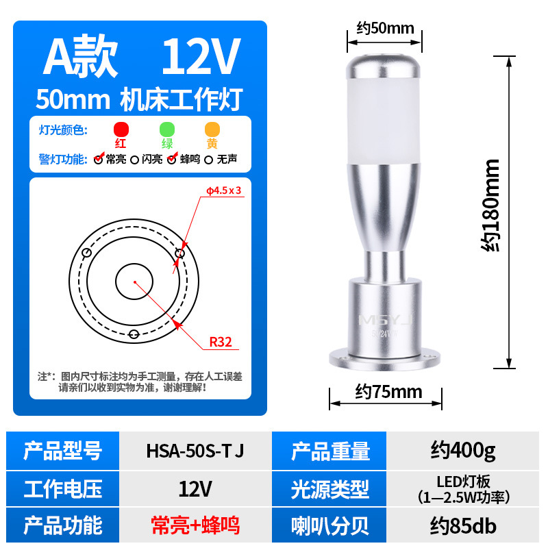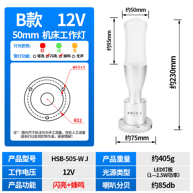 50m 알루미늄 접이식 안전 표시등 3 색 버저 LED 신호 등대 등 기계 경고 12/24V스토어 가기