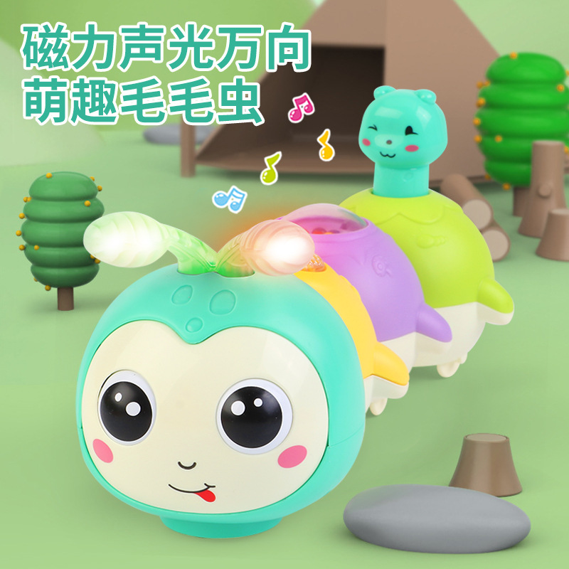새로운 전기 유니버설 마그네틱 스윙 애벌레 음악 빛 만화 동물 유아 교육 완구 국경 교차스토어 가기