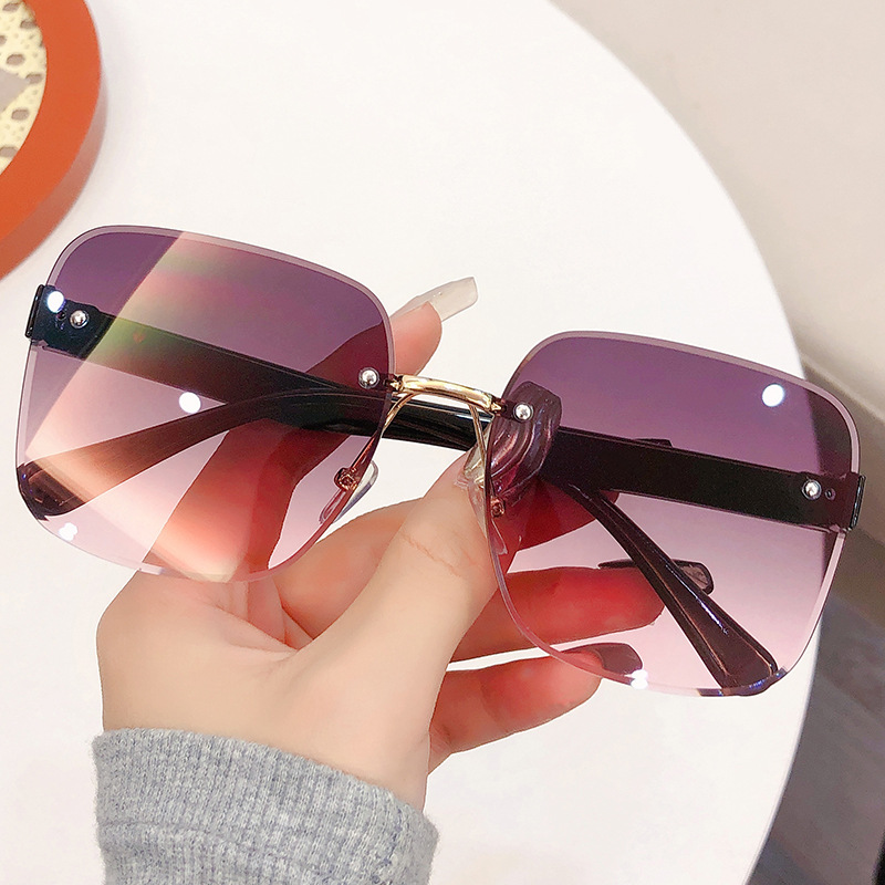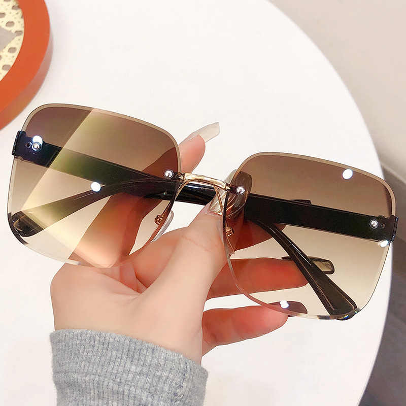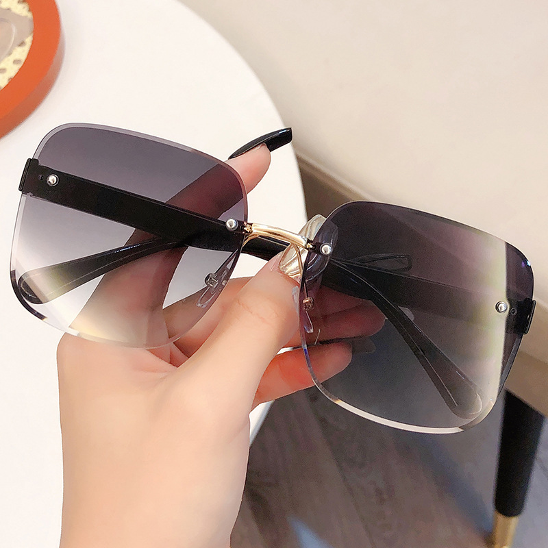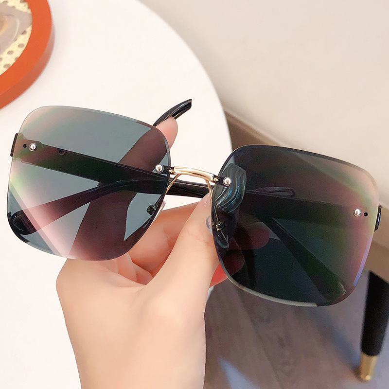 새로운 크로스 보더 프레임리스 트림 여성용 해양 시트 선글라스 패션 대형 프레임 양산 UV 보호 선글라스 도매