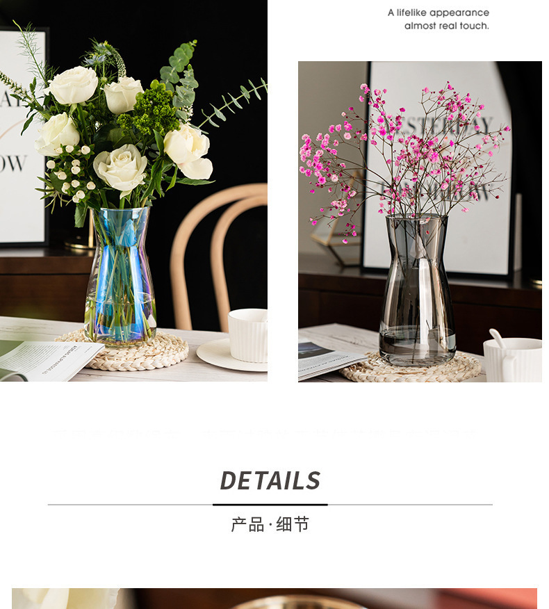 간단한 허리 투명 유리 꽃병 물 높이기 꽃 백합 장미 데스크탑 다채로운 신선한 꽃병 장식품스토어 가기