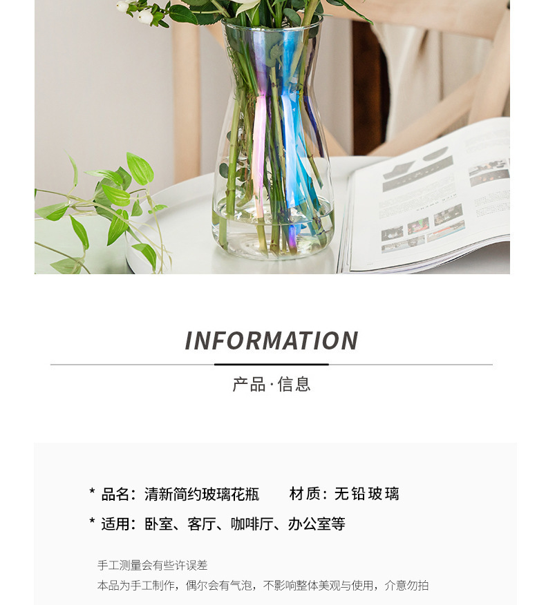 간단한 허리 투명 유리 꽃병 물 높이기 꽃 백합 장미 데스크탑 다채로운 신선한 꽃병 장식품