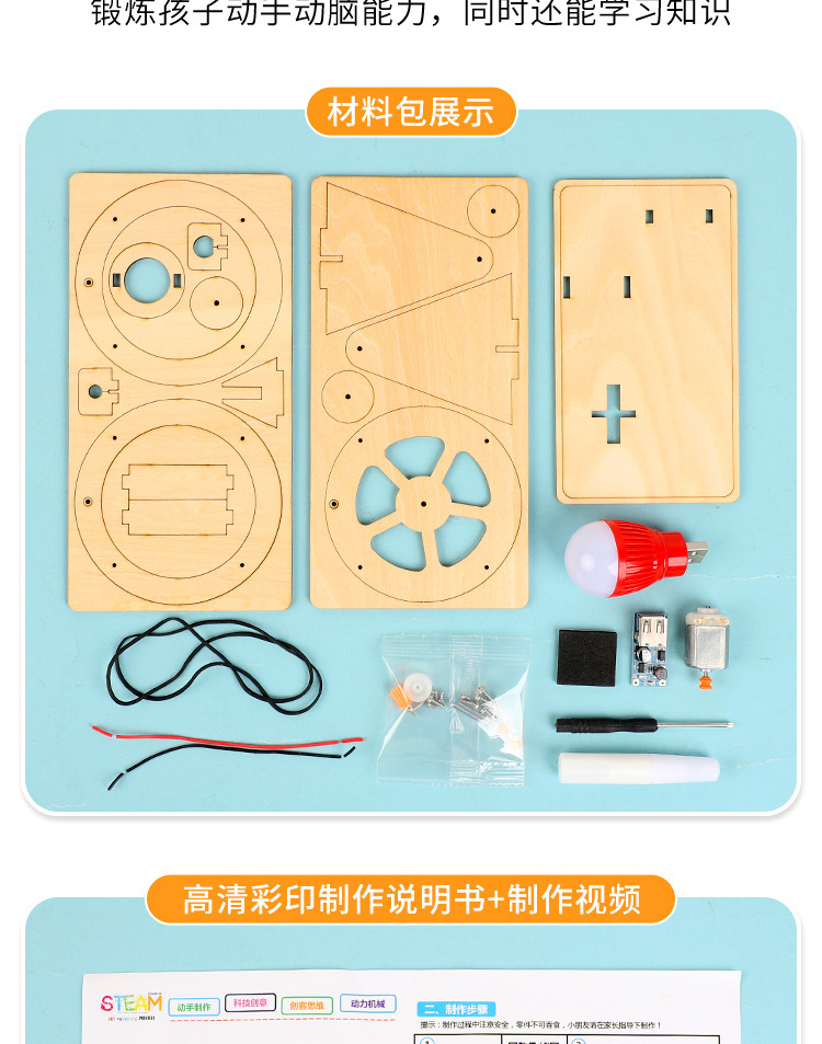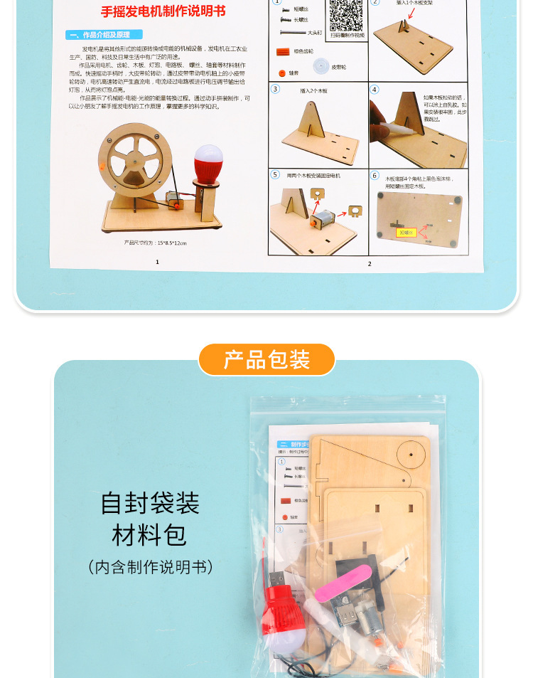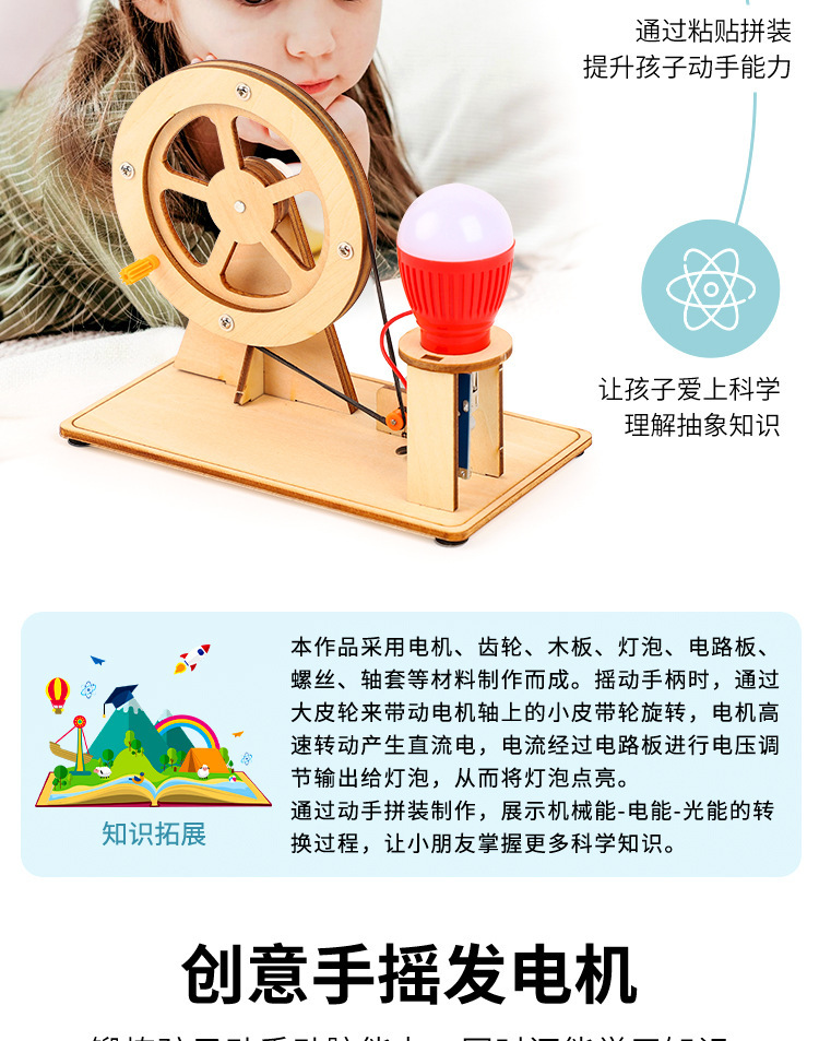 어린이 수동 발전기 재료 세트 초등학생 DIY 교육용 과학 실험 세트 수공예 기술 소형 제작