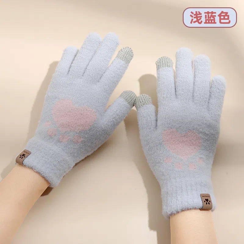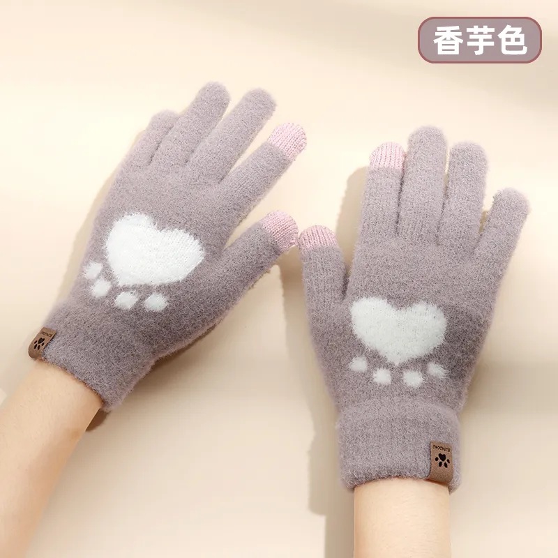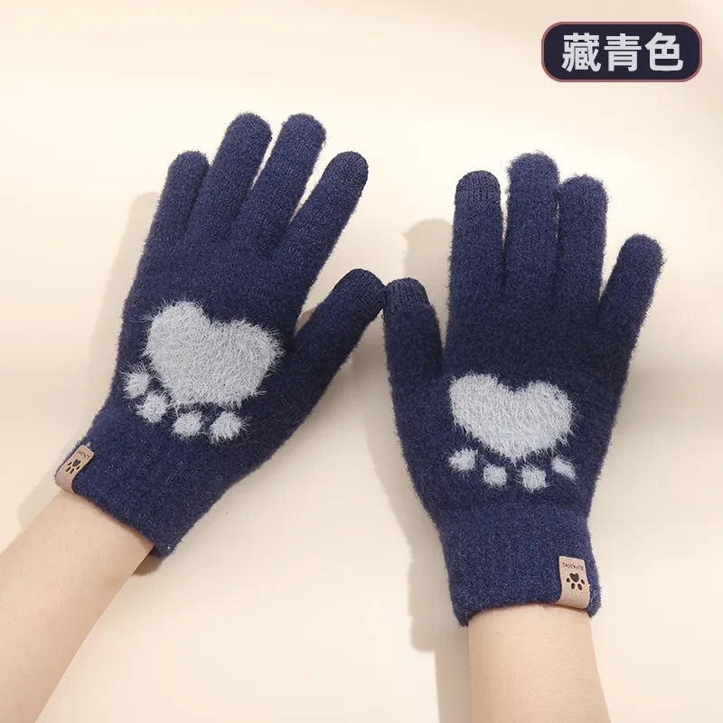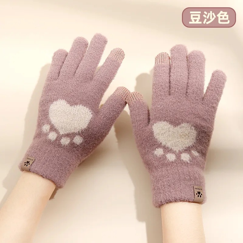 겨울 따뜻한 곰 발 장갑 겨울 여자의 니트 장갑 방한 귀여운 기모 두꺼운 터치 스크린 손가락 장갑