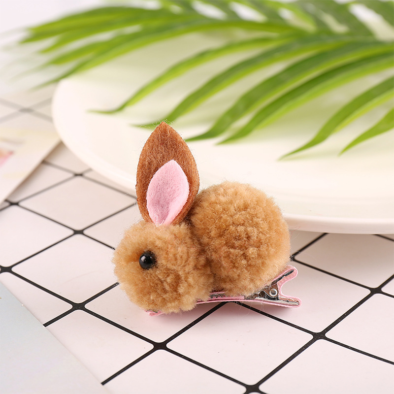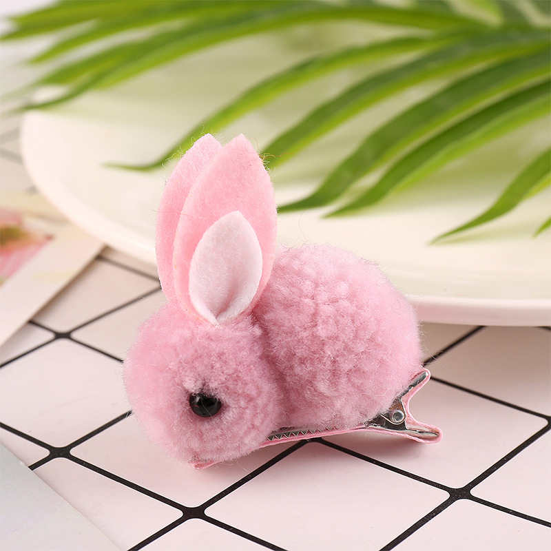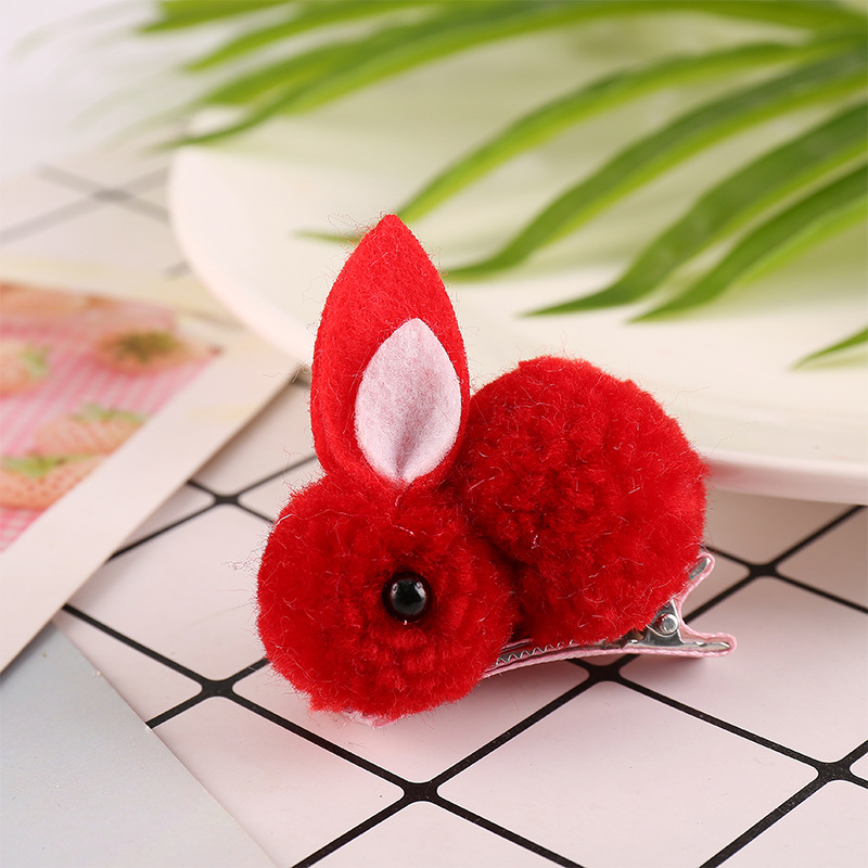 중추절 인기 만화 어린이 플러시 토끼 머리핀 수제 DIY 아기 귀여운 헤어 액세서리 머리핀 도매