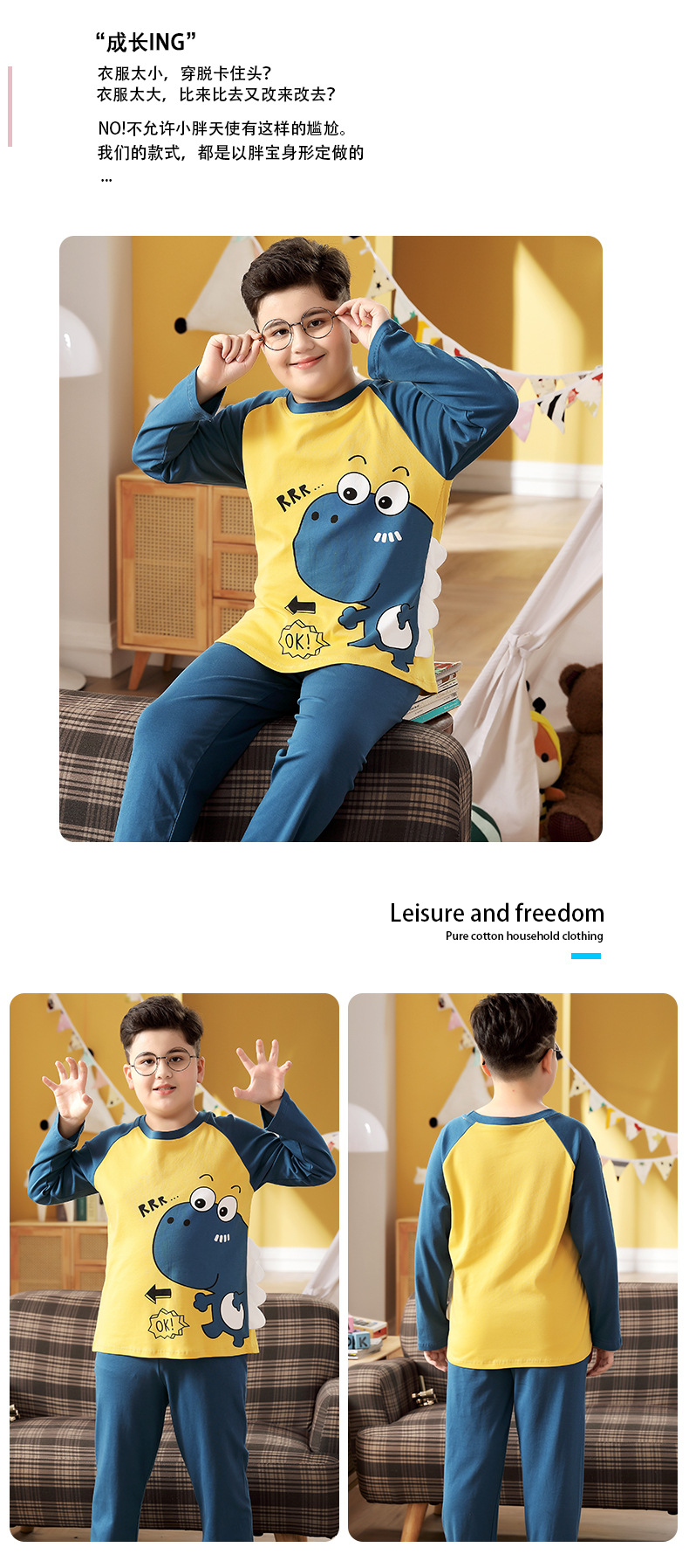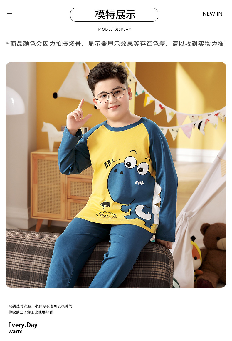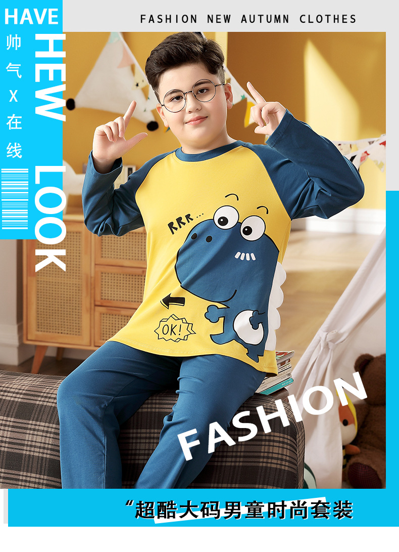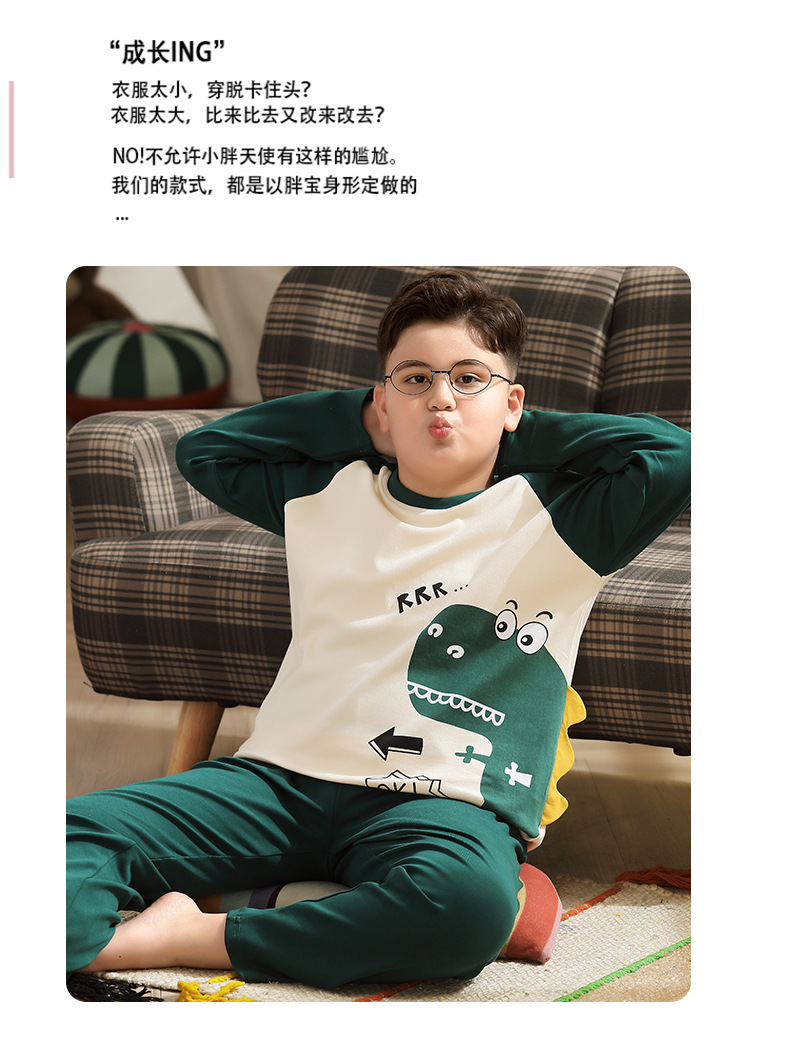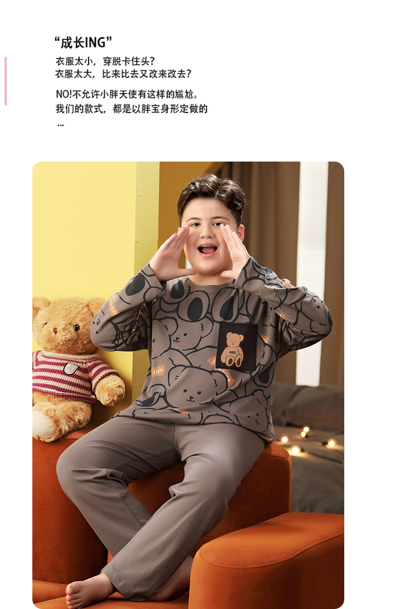 큰 뚱뚱한 아동 의류 소년 속옷 세트 순면 어린이 가을 옷과 뚱뚱한 소년의 잠옷을위한 바지 플러스 지방 플러스 지방을 착용스토어 가기