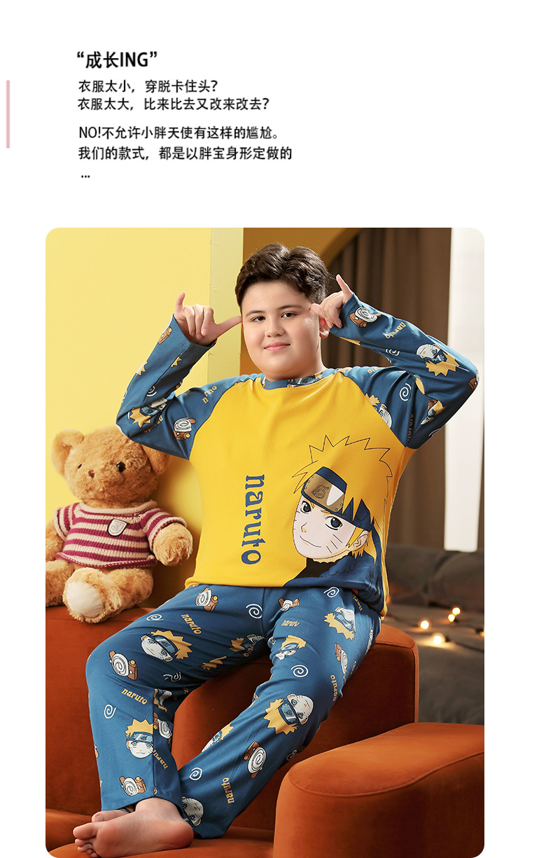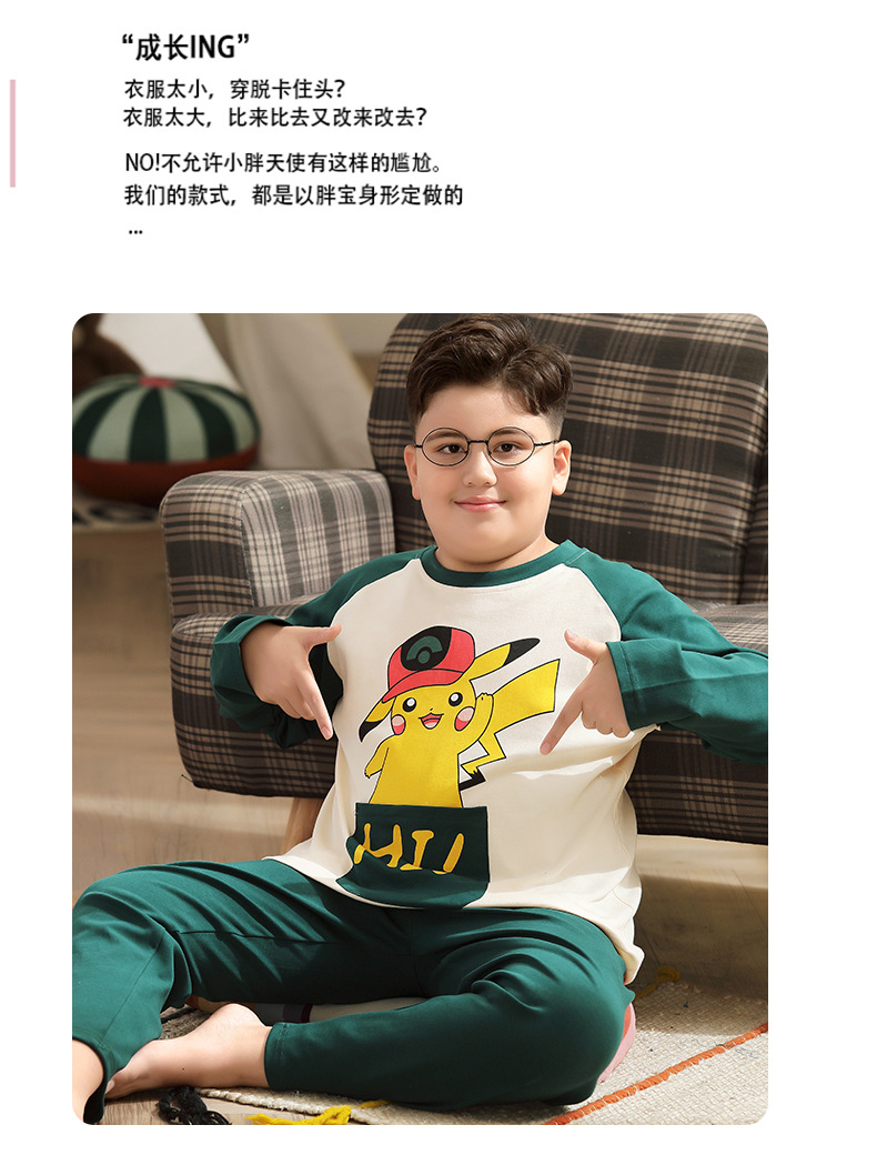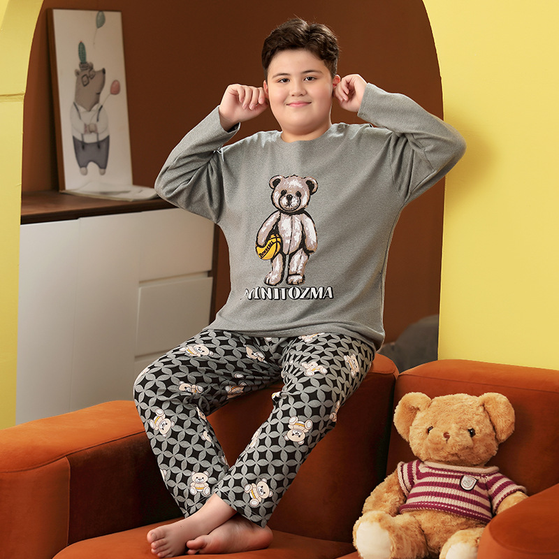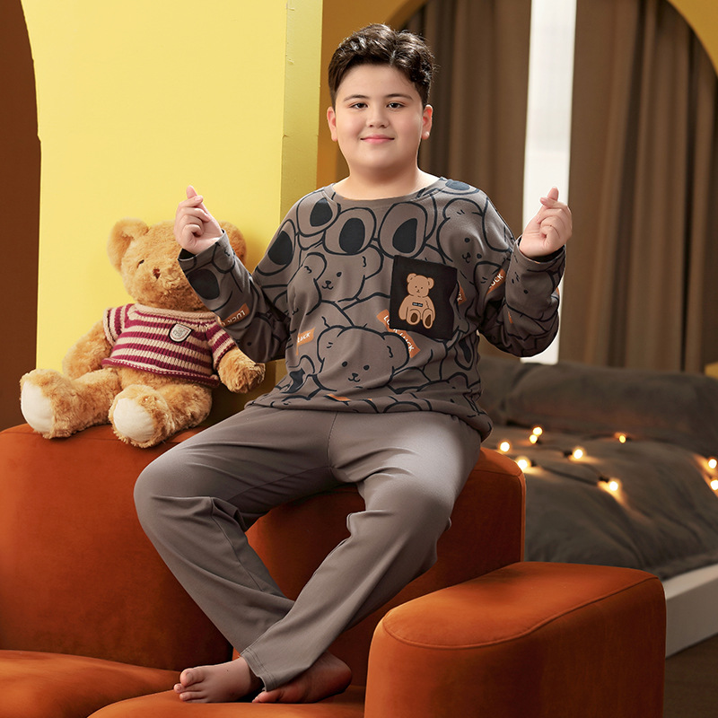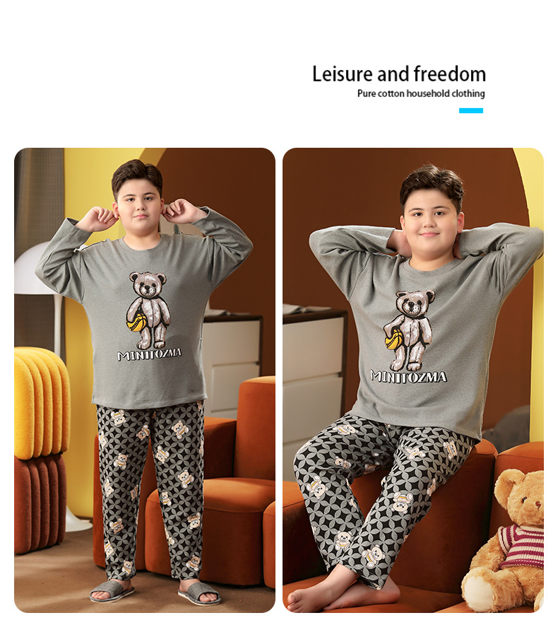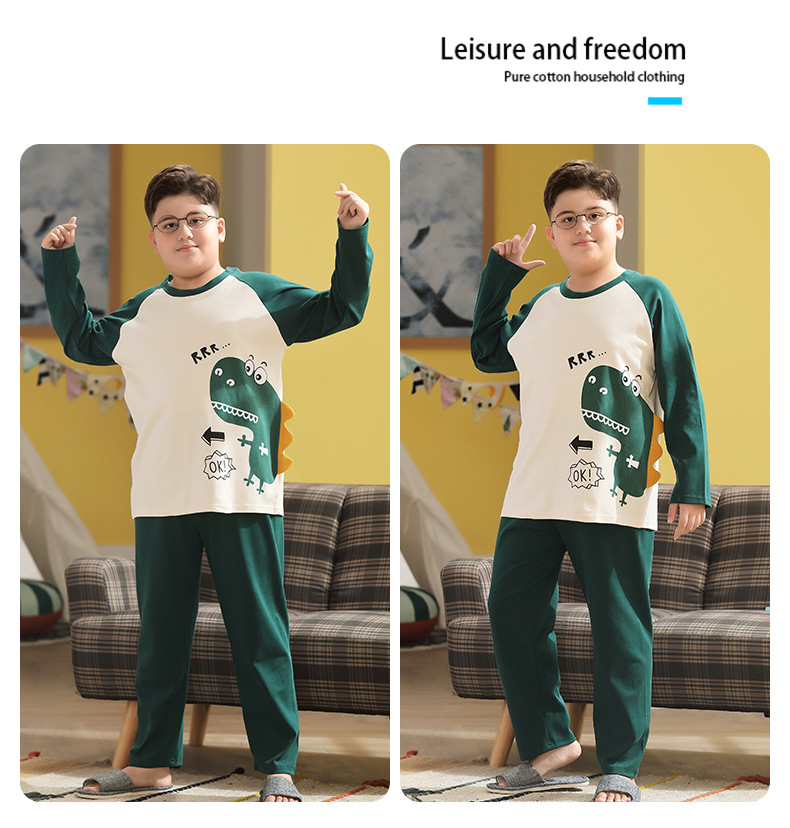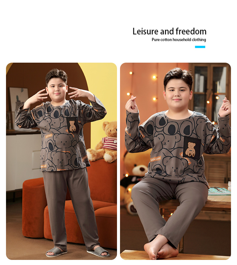 큰 뚱뚱한 아동 의류 소년 속옷 세트 순면 어린이 가을 옷과 뚱뚱한 소년의 잠옷을위한 바지 플러스 지방 플러스 지방을 착용스토어 가기