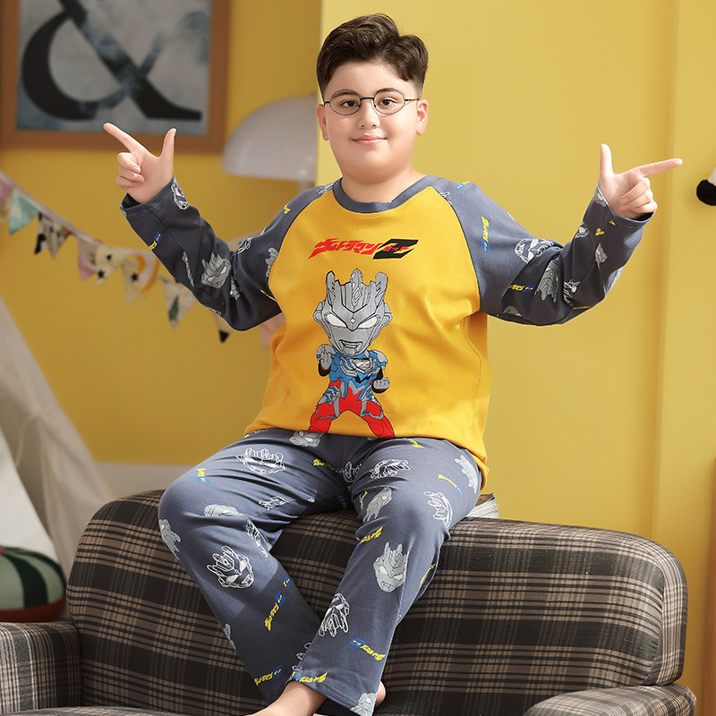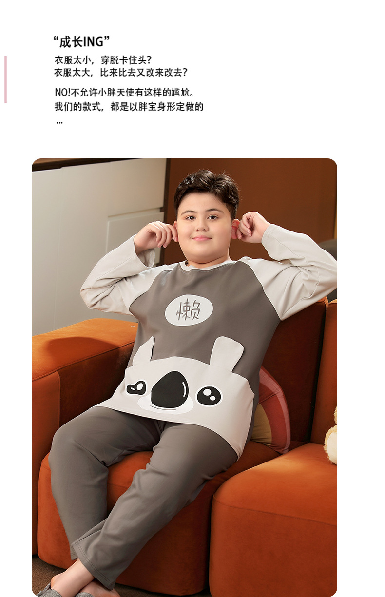 큰 뚱뚱한 아동 의류 소년 속옷 세트 순면 어린이 가을 옷과 뚱뚱한 소년의 잠옷을위한 바지 플러스 지방 플러스 지방을 착용