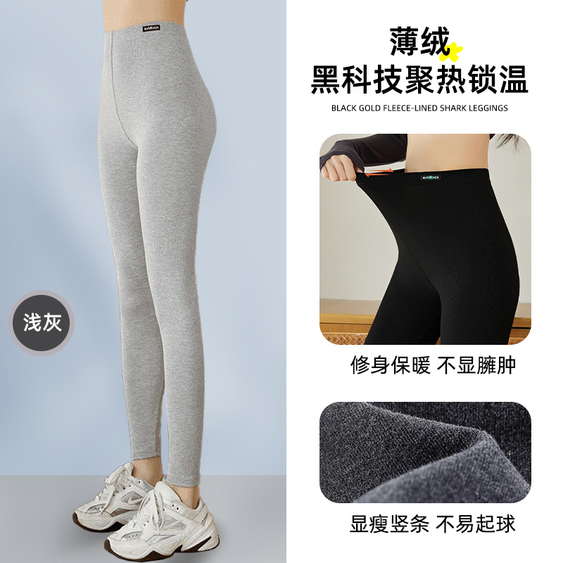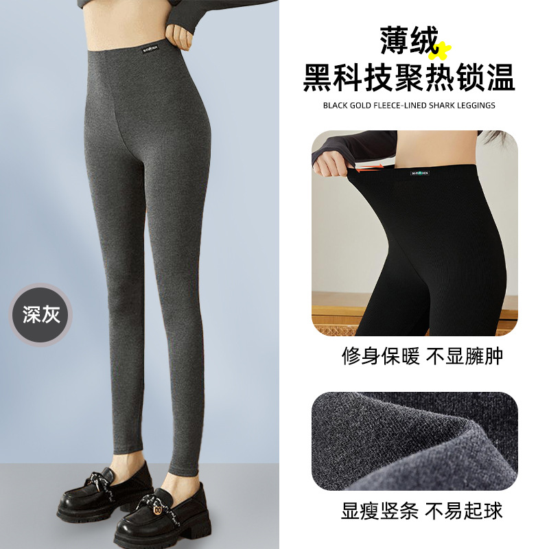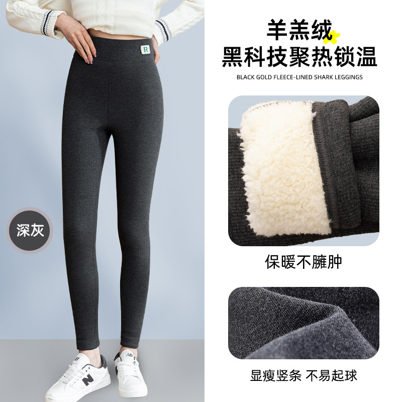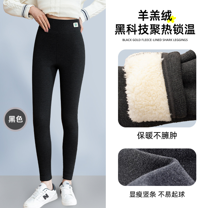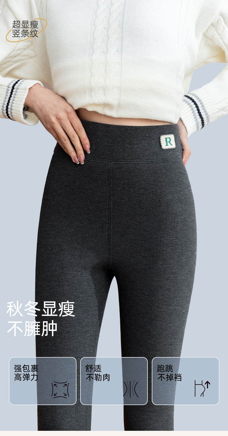 가을과 겨울 기모 여분의 두꺼운 여성용 레깅스 스레드 세로 면 하이 웨이스트 편안한 바지 착용 발목 길이 바지스토어 가기