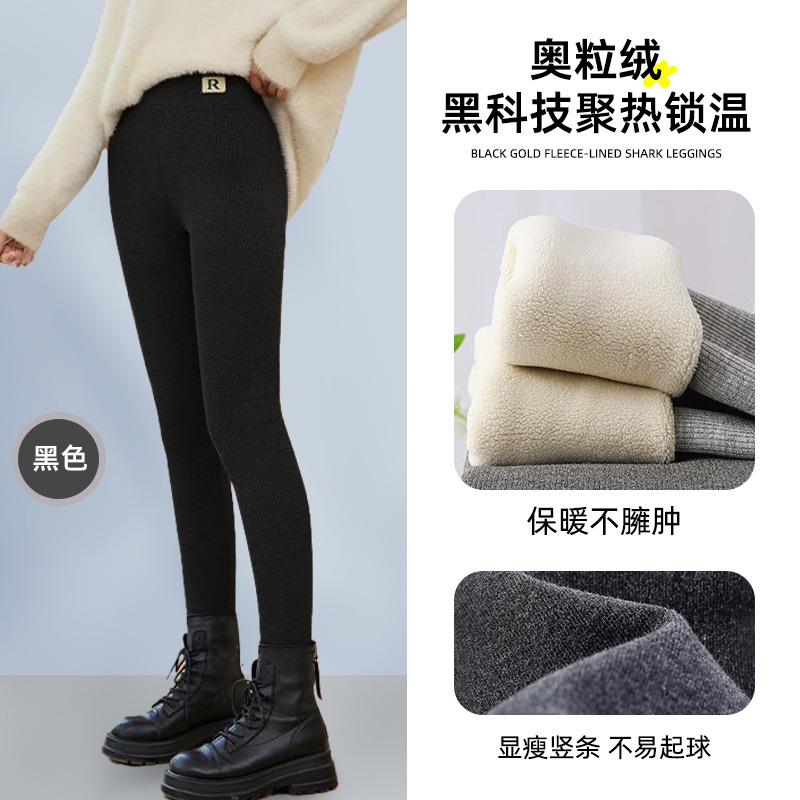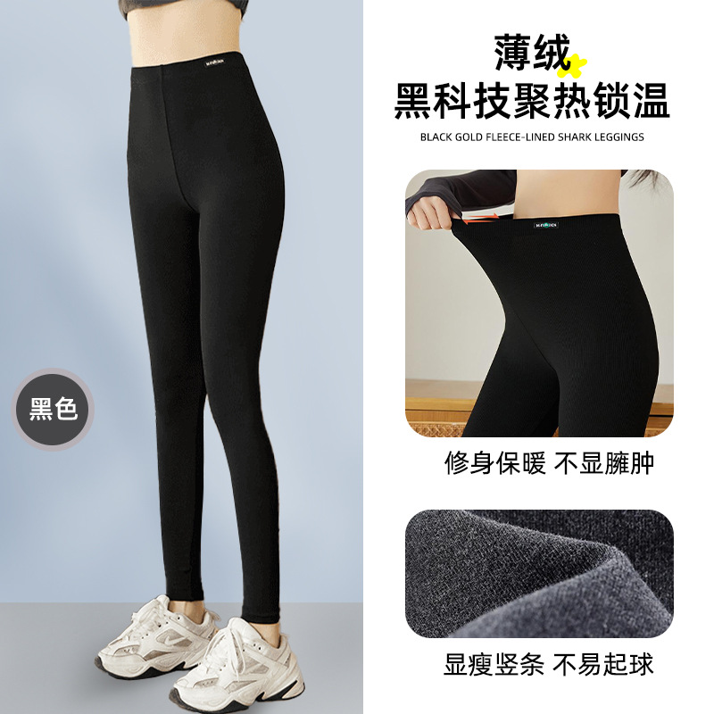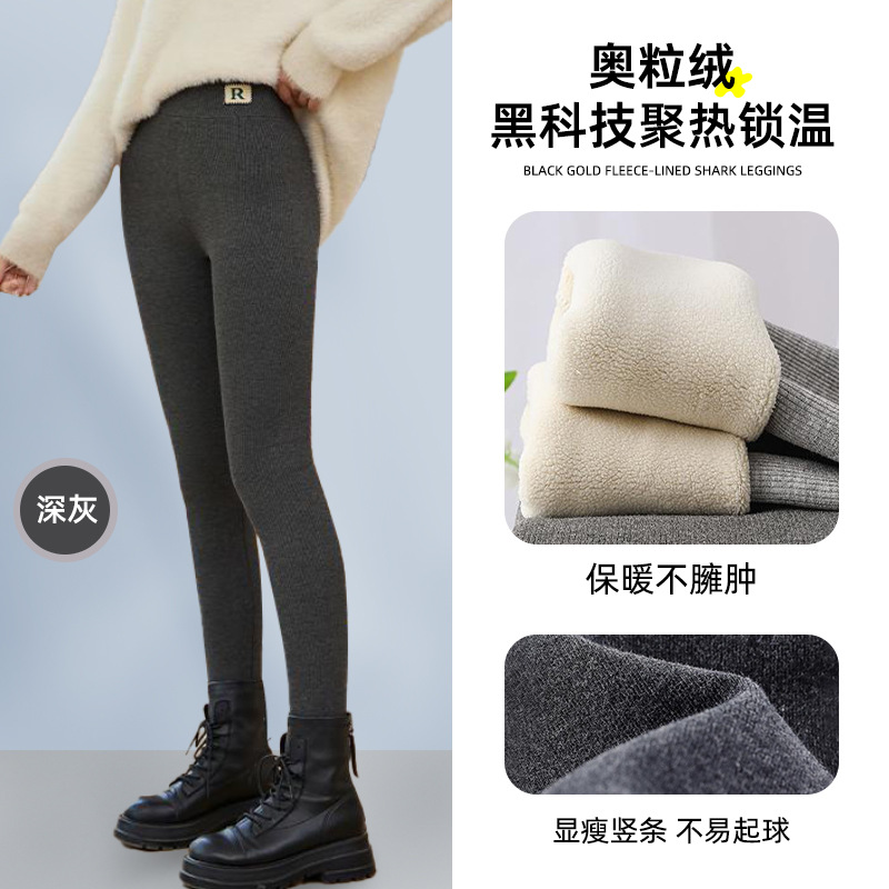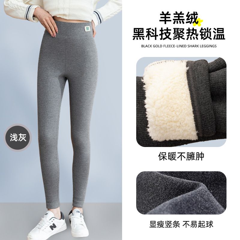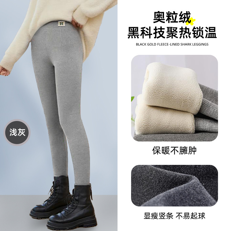 가을과 겨울 기모 여분의 두꺼운 여성용 레깅스 스레드 세로 면 하이 웨이스트 편안한 바지 착용 발목 길이 바지스토어 가기