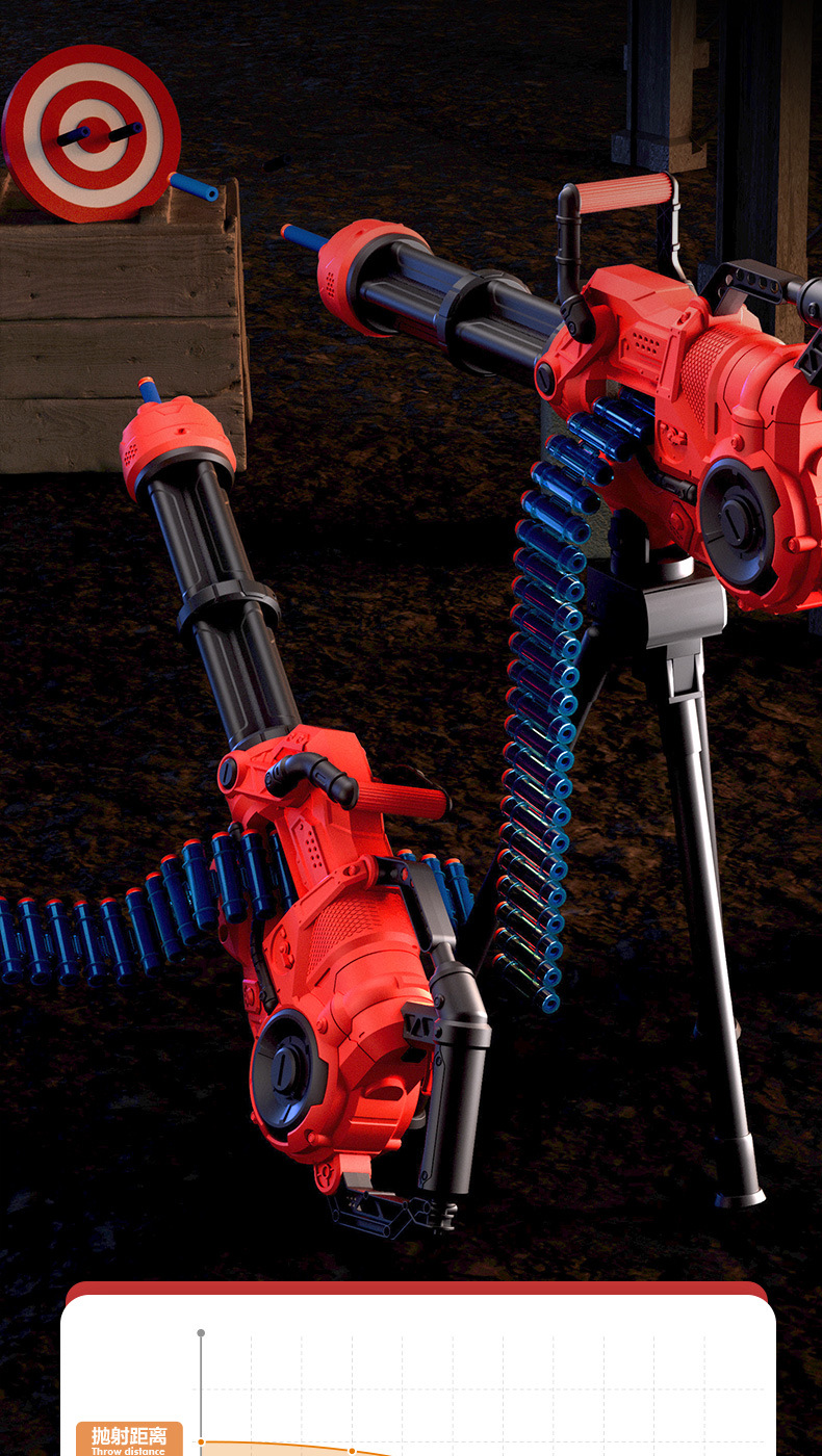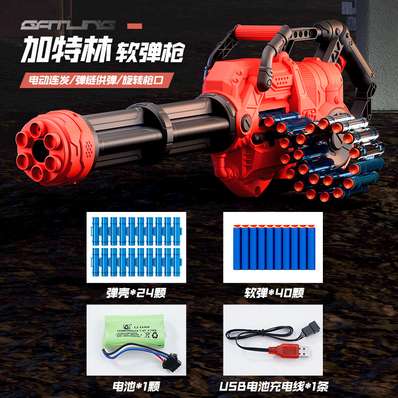 货号:9945-1 高配版电动加特林连发带弹壳软弹枪带支架