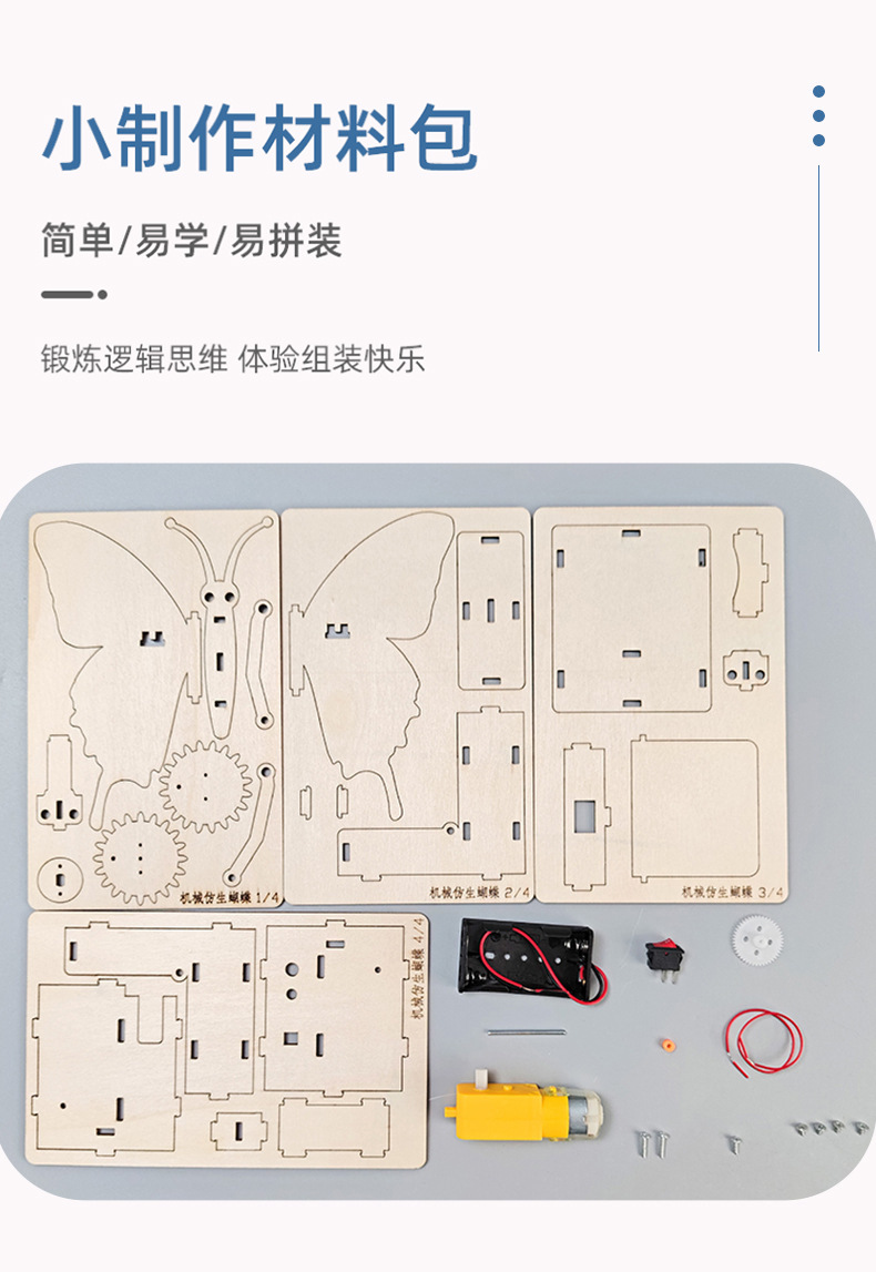 기계 생체 공학 나비 기술 소형 만들기 어린이 과학 실험 교구 초등학생을위한 수제 DIY 재료 가방