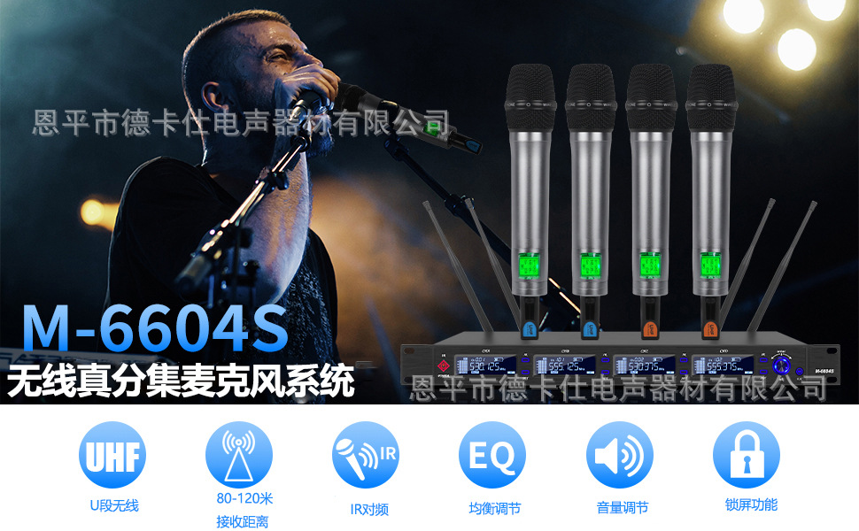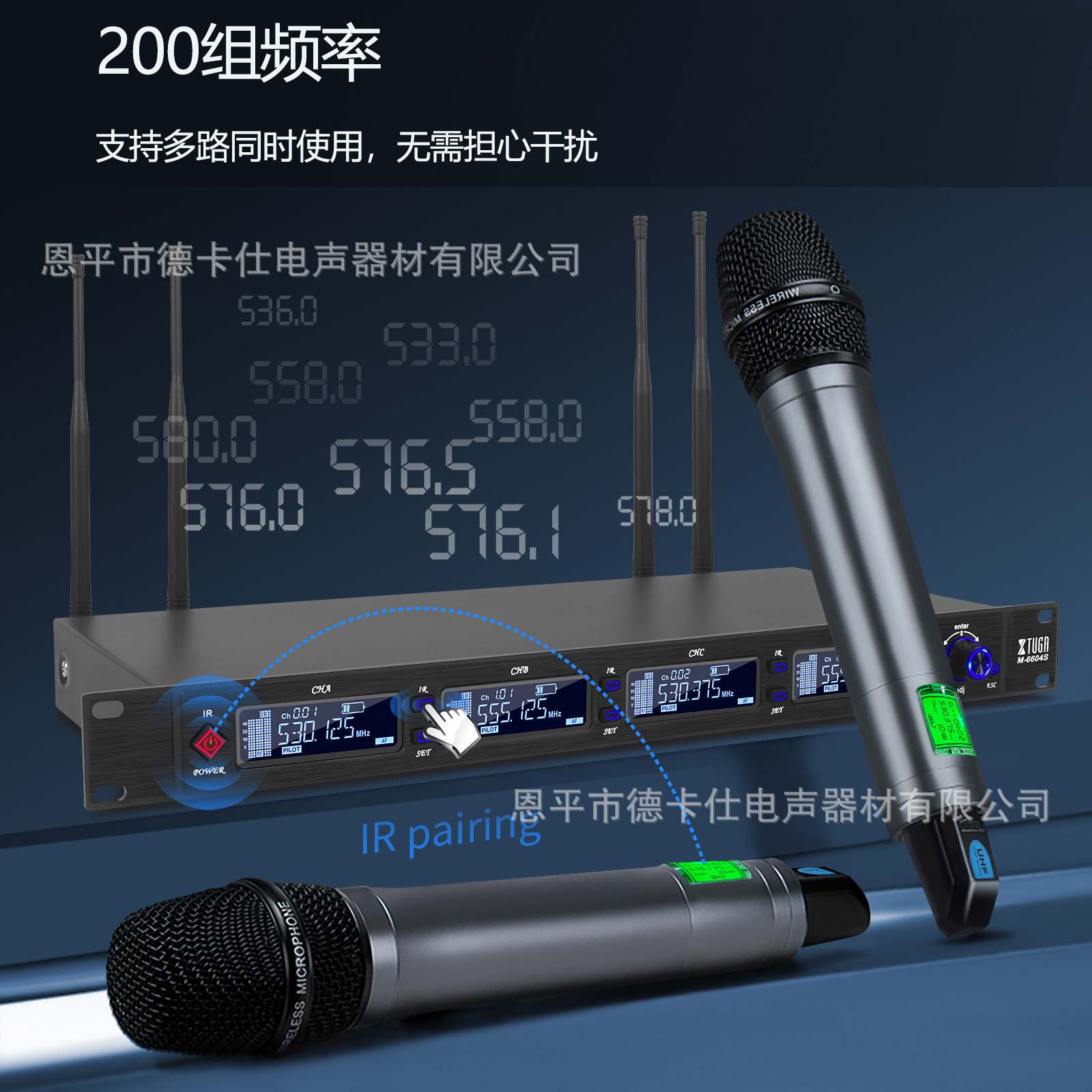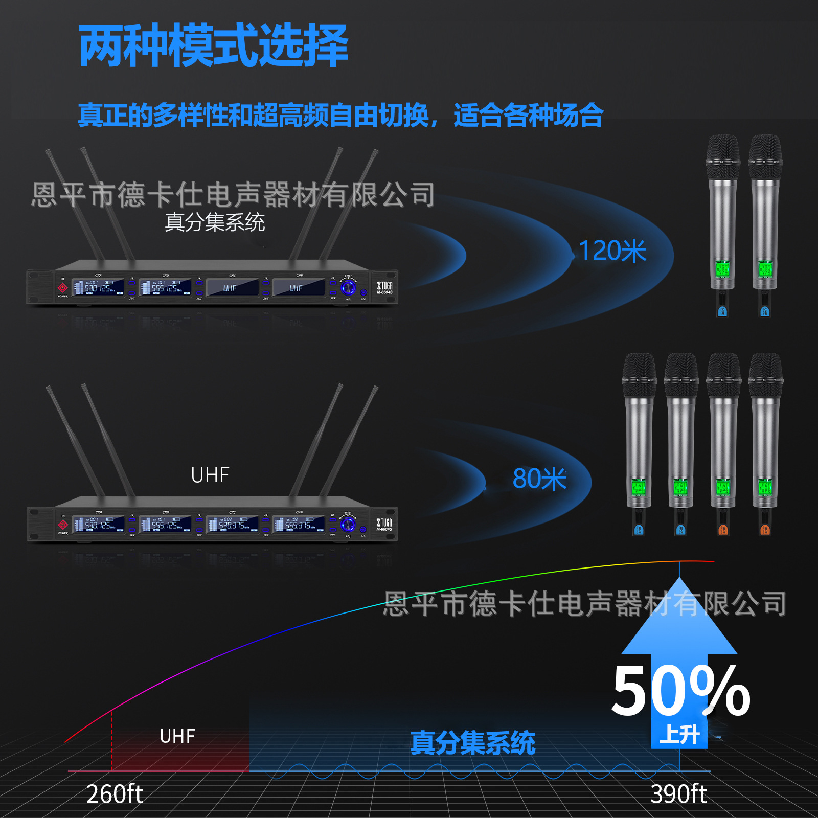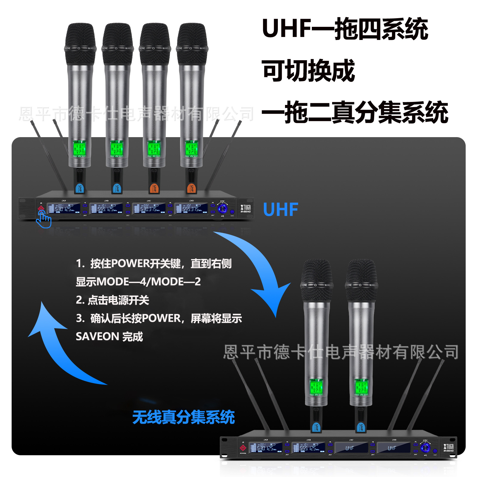 새로운 무선 실제 다양성 마이크 마이크 2 개의 4 모드 채널 스위칭 알루미늄 상자 가방 풀 세트 교회