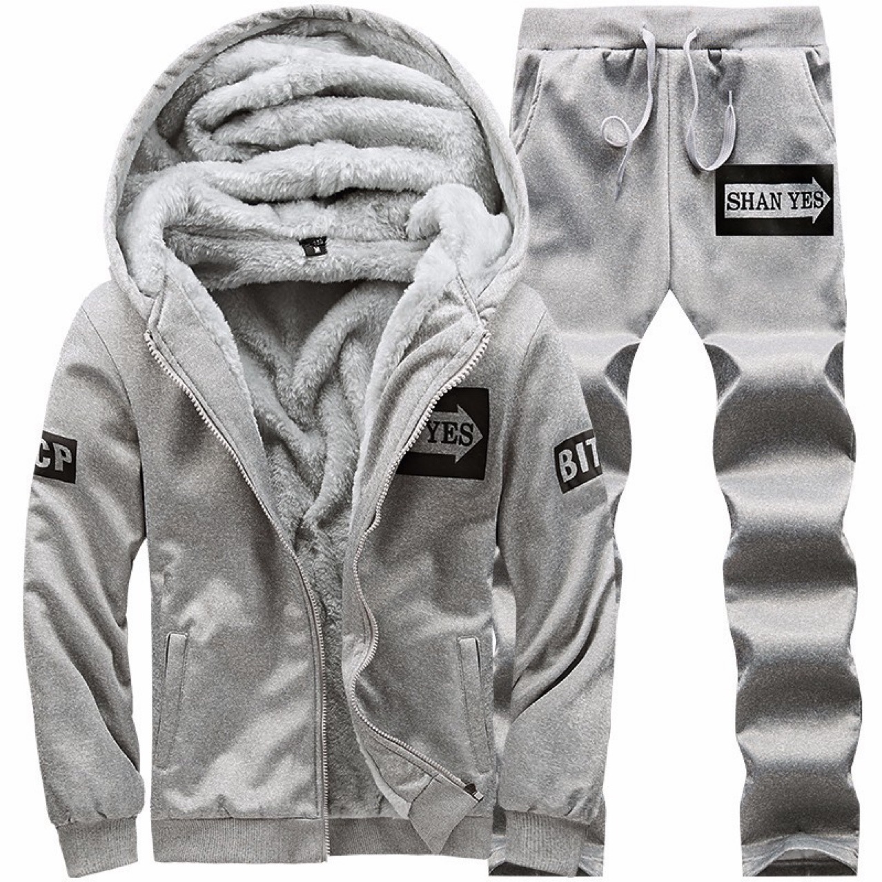 기모 두꺼운 가을과 겨울 재고 후드 캐주얼 느슨한 사각 방풍 따뜻한 스포츠 남자의 세트